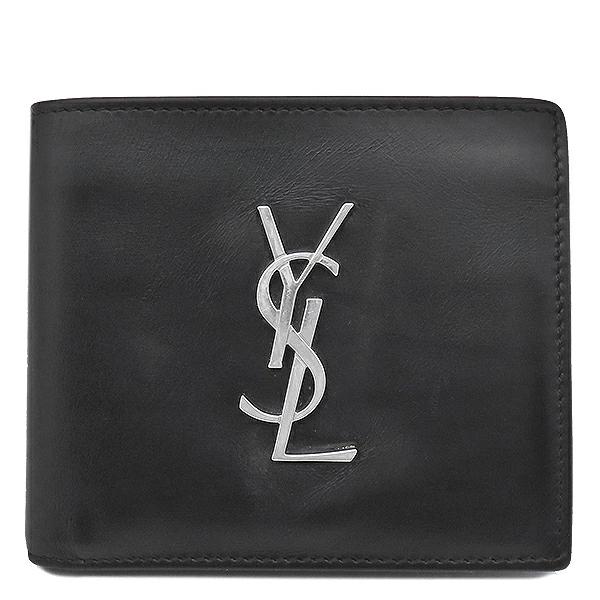 ▲クリックで拡大されますサンローラン SAINT LAURENT 二つ折り財布 モノグラム ウォレット レザー ブラック 黒 札入れ シルバー金具 453276 メンズ定番 人気 美品 【中古】