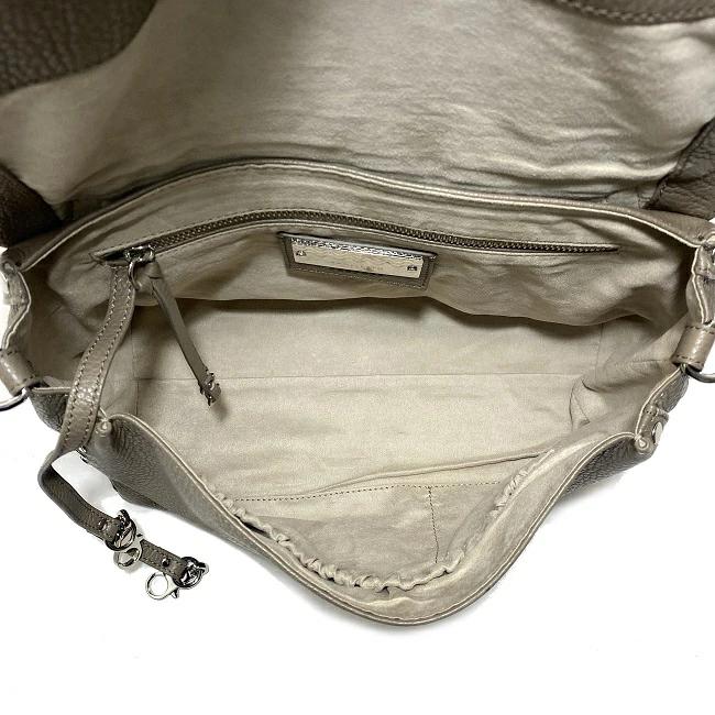 詳細説明:金具に小傷、フラップ内側の本体側にシミ汚れ、ハンドルの付け根にホツレ、ストラップに汚れ、角に小さな傷、内側ロゴプレートと付近に汚れ等、使用感はありますが、まだまだお使い頂けるお品物です。