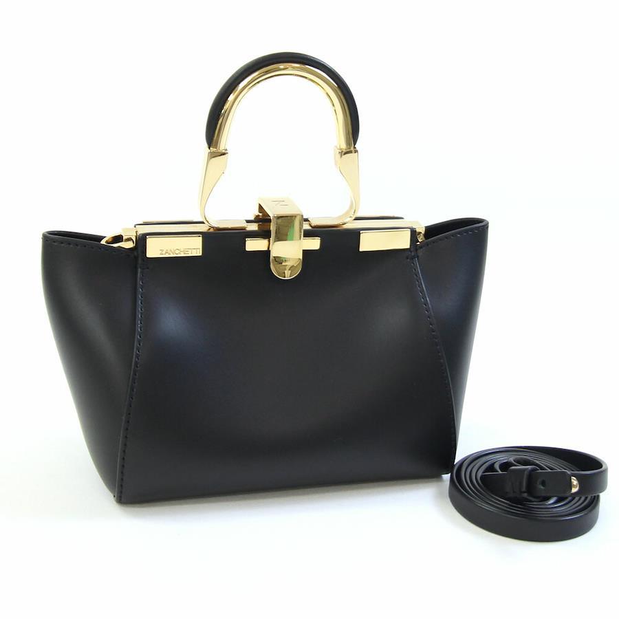 ザンケッティ2WAYハンドバッグアムレットミニAMMI718ブラックレザー中古ショルダー斜め掛け肩掛けミニバッグレディースZANCHETTI