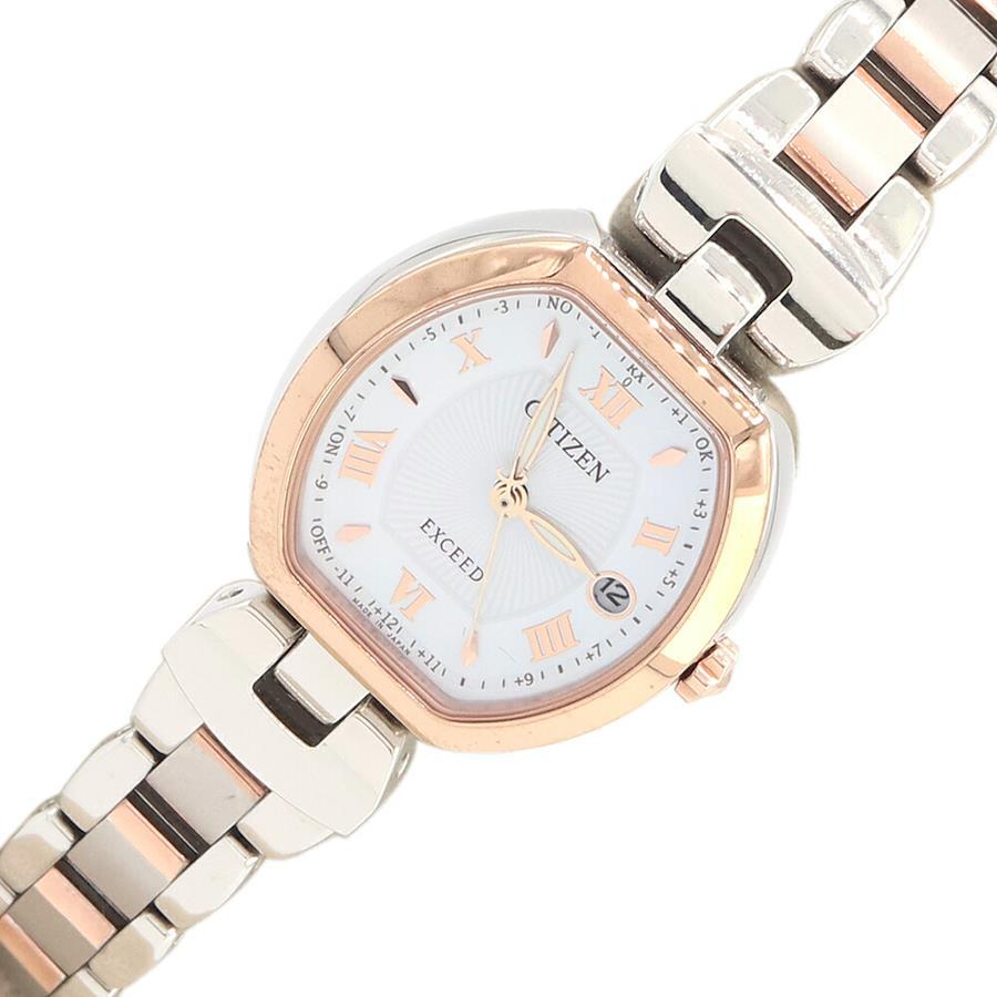シチズンレディースウォッチエクシードES945553Aホワイトシェルローマ数字インデックススーパーチタニウムエコドライブ中古腕時計電波時計ソーラーレディース女性CITIZEN