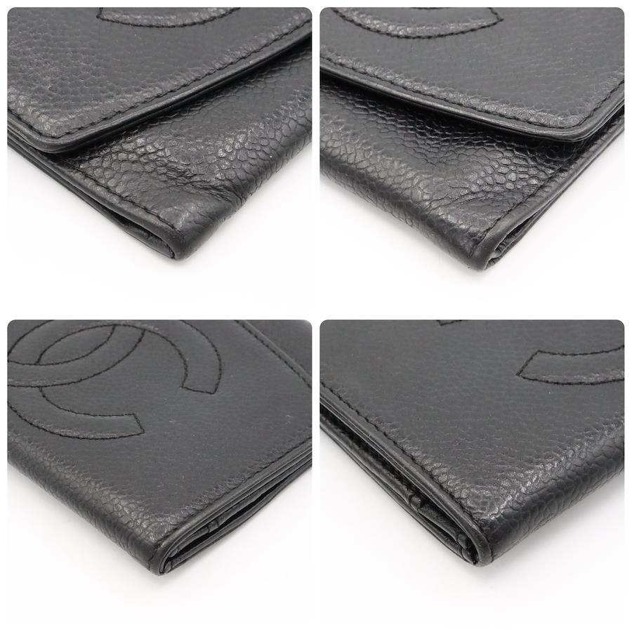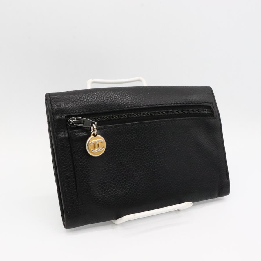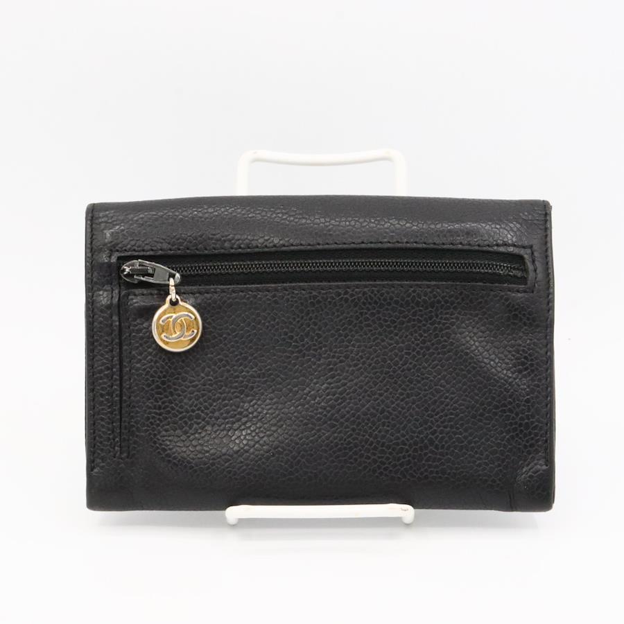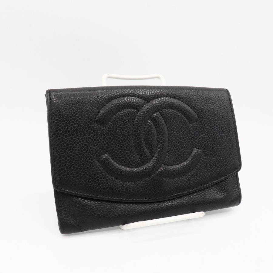 【商品説明】品名 シャネル キャビアスキン ココマーク 折り財布 ブラックシリアルナンバー 2899319サイズ 約縦10センチ 横14.5センチ 厚み2センチ仕様 小銭入れ2 ポケット1付属品 ギャランティカード【商品状態】剥がれ、ベタつきありません。ファスナースムーズです。ボタンしっかりとまります。若干のスレ、ヨレがあります。届いたらすぐに気持ちよくお使いいただけるコンディションです。この機会に是非お買い求めください
