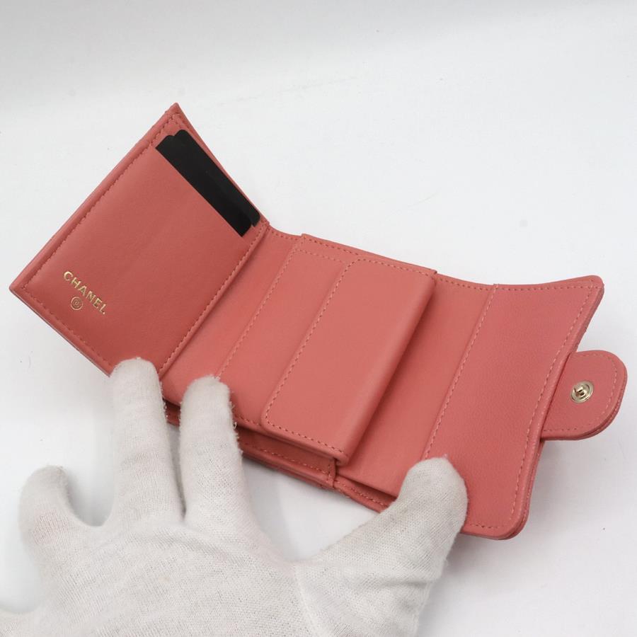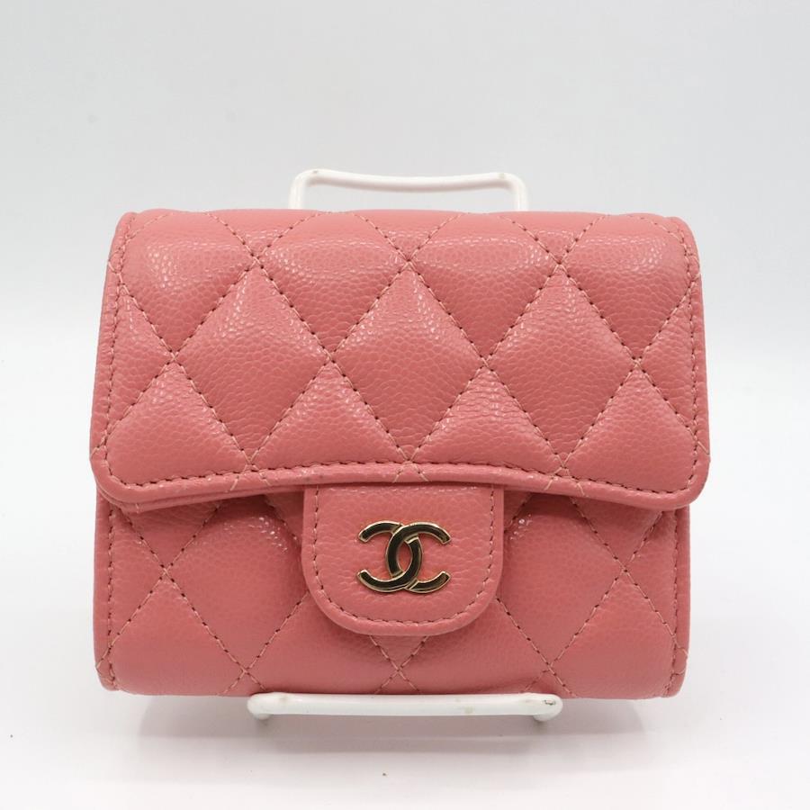 【商品説明】品名 シャネル キャビアスキン マトラッセ 折り財布 ピンクシリアルナンバーサイズ 約縦9センチ 横10.5センチ 厚み3.5センチ仕様 小銭入れ1 札入れ 1 ポケット3 カード入れ4付属品 保存袋 箱【商品状態】剥がれ、ベタつきありません。小銭入れに汚れがあります。ボタンしっかりとまります。若干のスレ、ヨレがあります。届いたらすぐに気持ちよくお使いいただけるコンディションです。この機会に是非お買い求めください