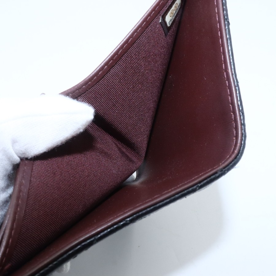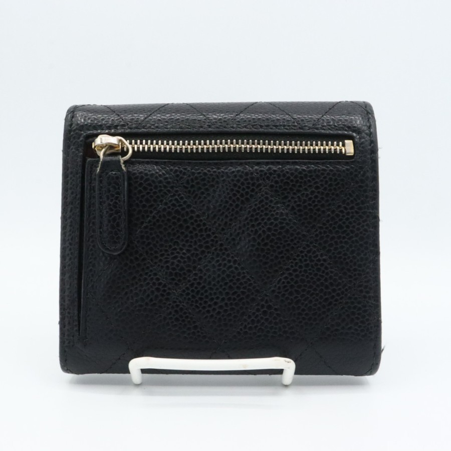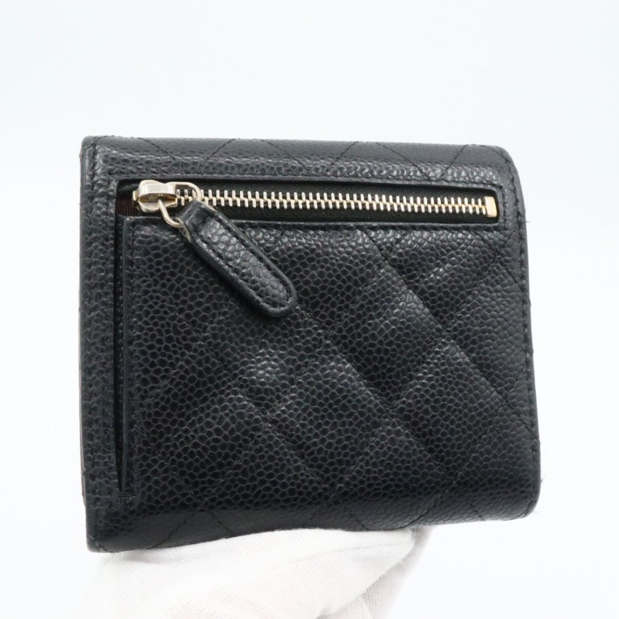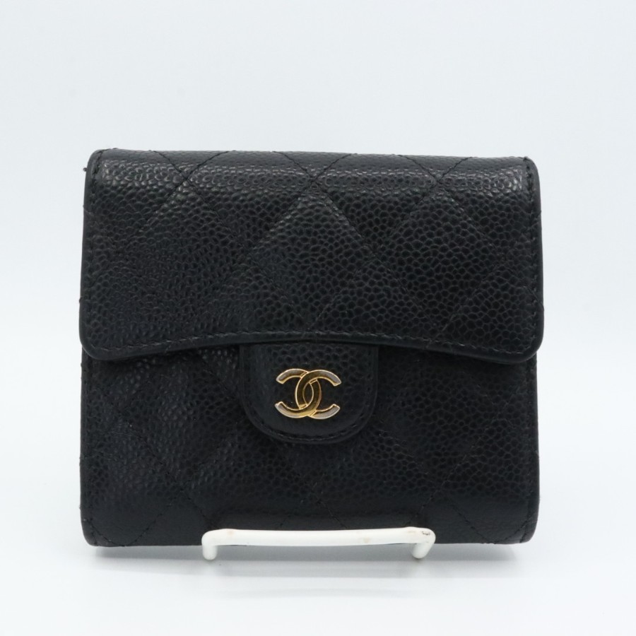 【商品説明】品名 シャネル キャビアスキン マトラッセ 折り財布 ブラックシリアルナンバー 25209535サイズ 約縦10センチ 横11.5センチ 厚み3センチ仕様 小銭入れ1 札入れ1 ポケット2 カード入れ6付属品 なし【商品状態】剥がれ、ベタつきありません。ファスナースムーズです。ボタンしっかりとまります。若干のスレ、ヨレがあります。届いたらすぐに気持ちよくお使いいただけるコンディションです。この機会に是非お買い求めください