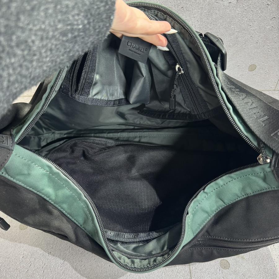 ブランド名:シャネル素材:ナイロン・キャンバスサイズ:約 H 32.5cm×W 48.5cm×D 15cmチェーン長さ:約 103cm年代:8番台 2003年ー2004年製造付属品:ギャランティカード、シリアルシール状態:Aランク 使用感の少ない綺麗な中古品