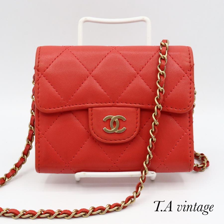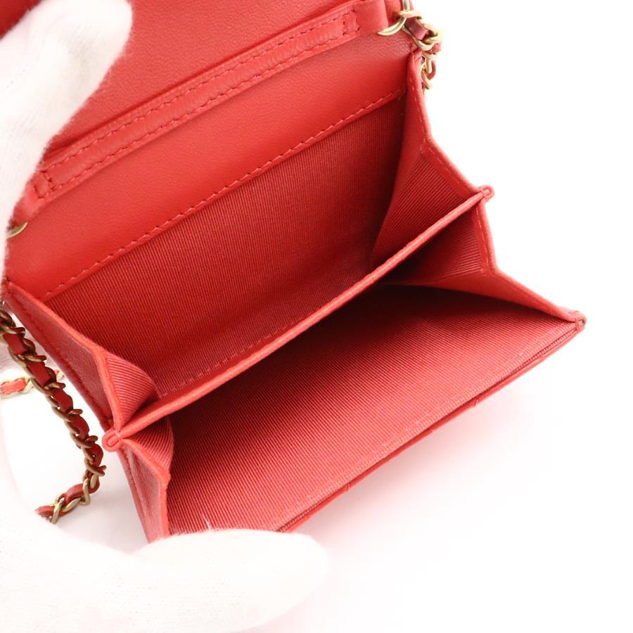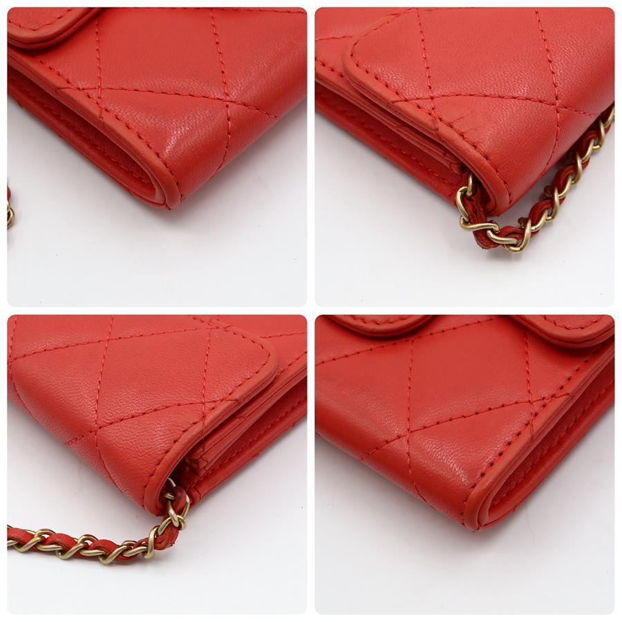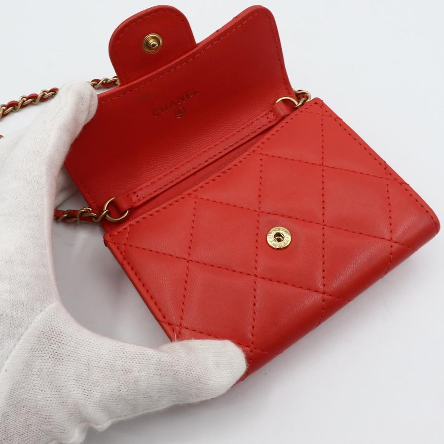 品名 ラムスキン マトラッセ チェーンウォレット チェーンポーチ レッド ゴールド金具