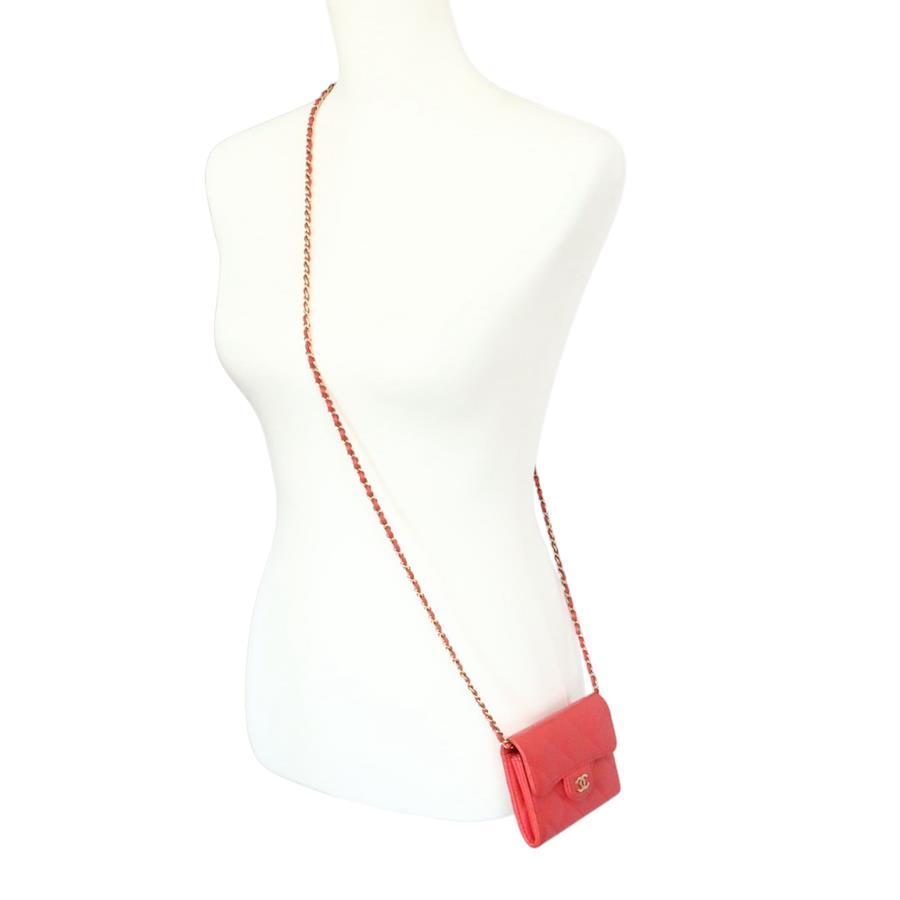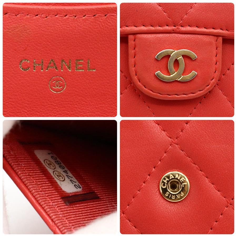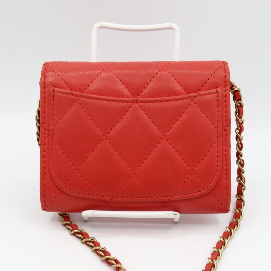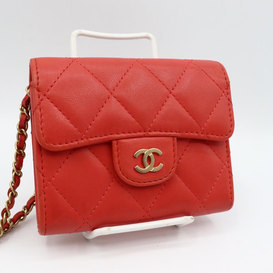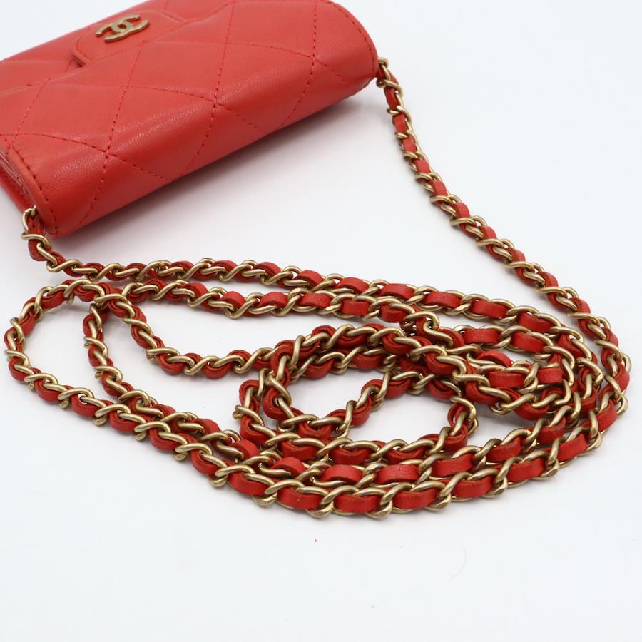 品名 ラムスキン マトラッセ チェーンウォレット チェーンポーチ レッド ゴールド金具