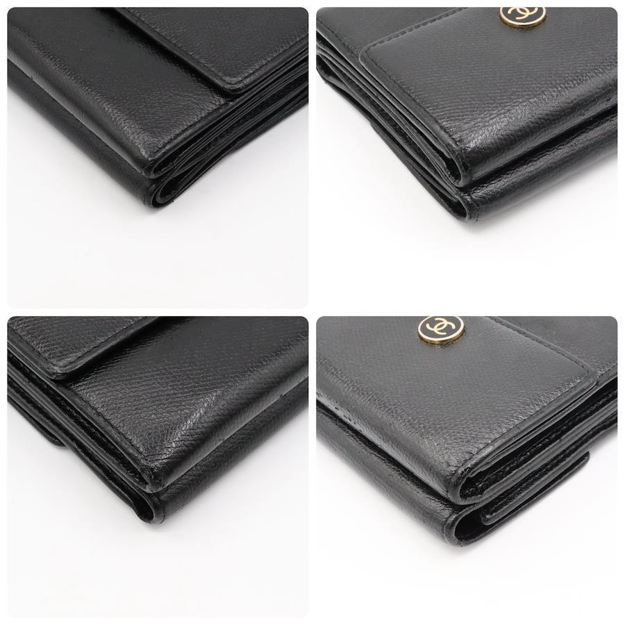 【商品説明】品名 シャネル レザー ココボタン Wホック 財布 ブラックシリアルナンバー 8860001サイズ 約縦9.5センチ 横10センチ 厚み3センチ仕様 小銭入れ1 札入れ1 カード入れ6付属品 なし【商品状態】剥がれ、ベタつきありません。ボタンしっかりとまります。若干のスレ、ヨレがあります。届いたらすぐに気持ちよくお使いいただけるコンディションです。この機会に是非お買い求めください