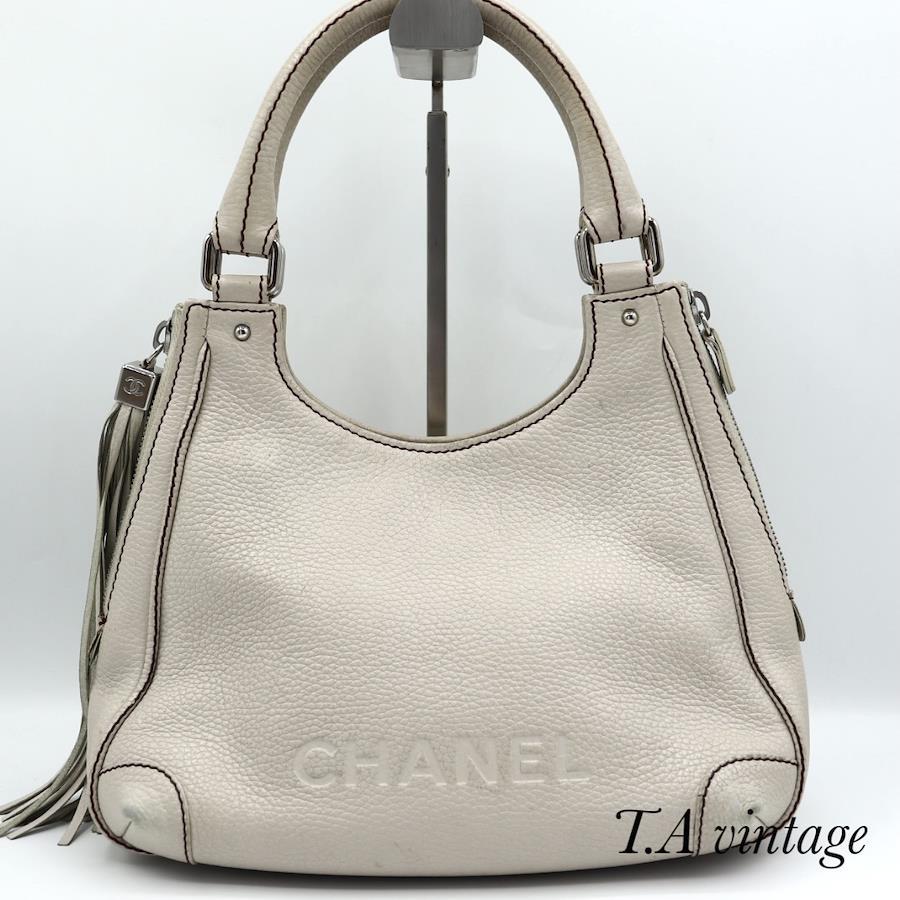 品名 シャネル レザー フリンジ ハンドバッグ アイボリー シルバー金具
