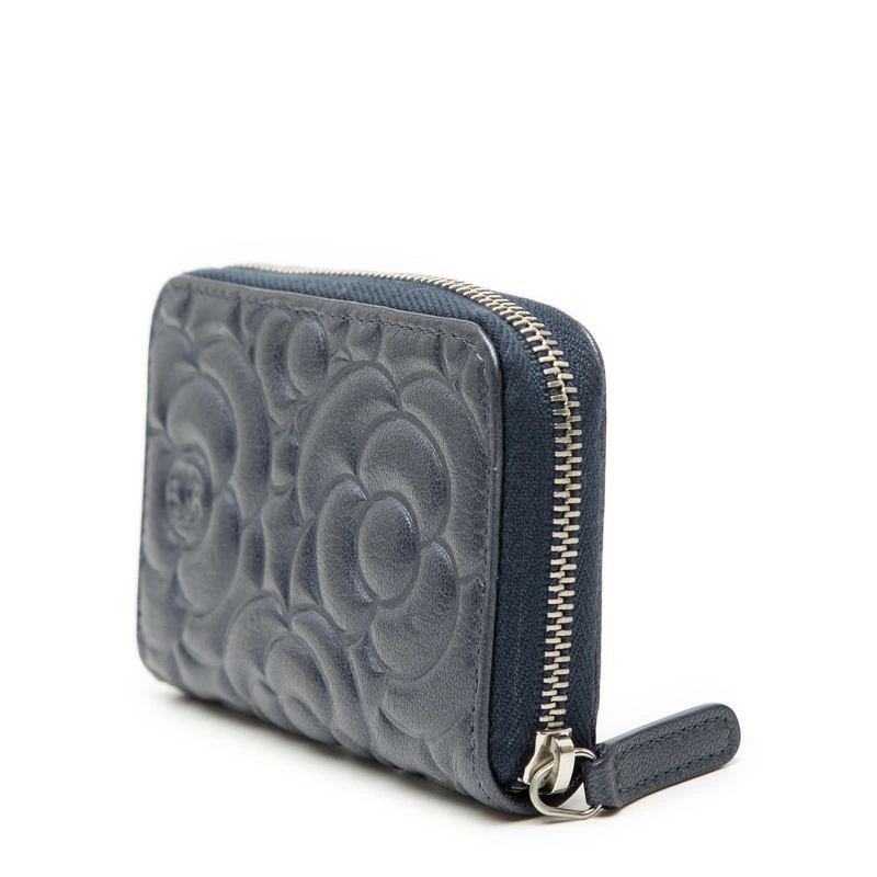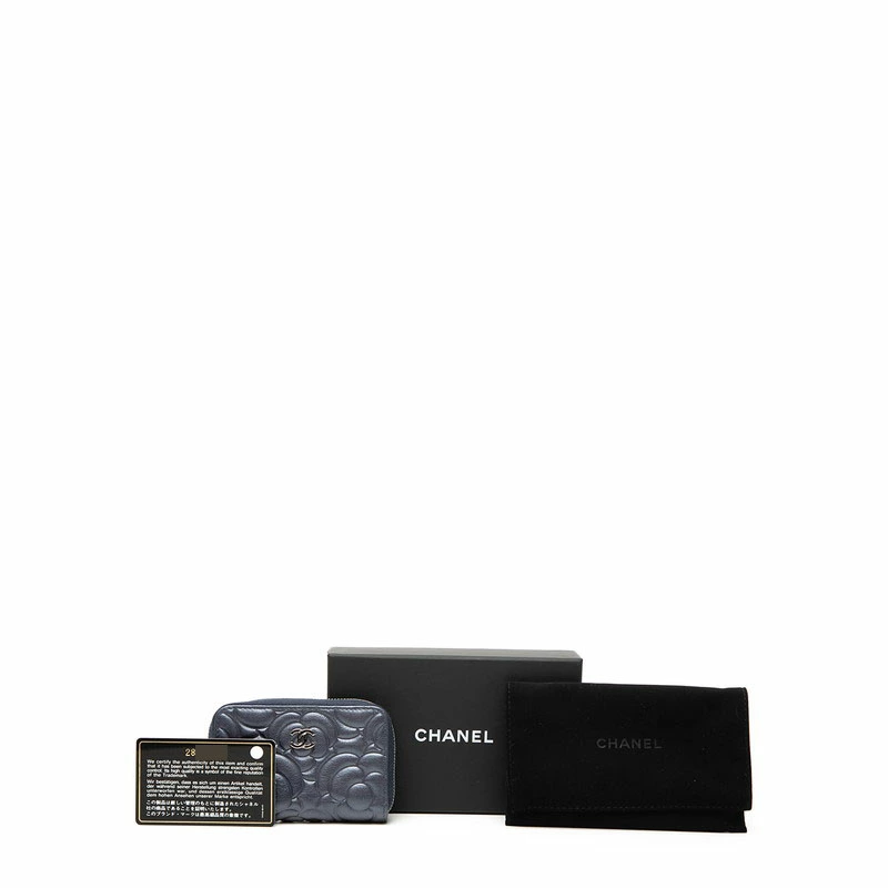 Chanel Camellia Coco Mark Coin Case, Purple and Navy Leather, Women's, CHANEL [Pre-owned]