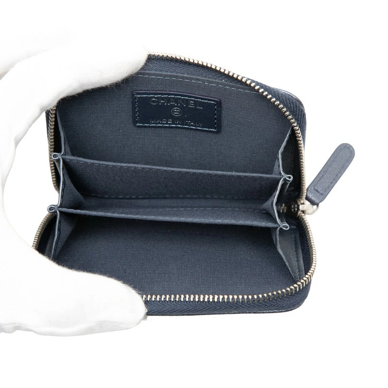 シャネル カメリア ココマーク コインケース 小銭入れ パープル ネイビー レザー レディース CHANEL 【中古】