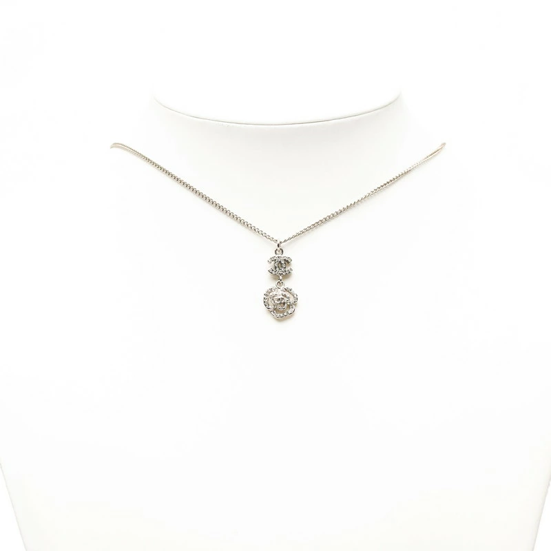 シャネル カメリア ココマーク ペンダント ネックレス 07A シルバー メタル ラインストーン レディース CHANEL 【中古】