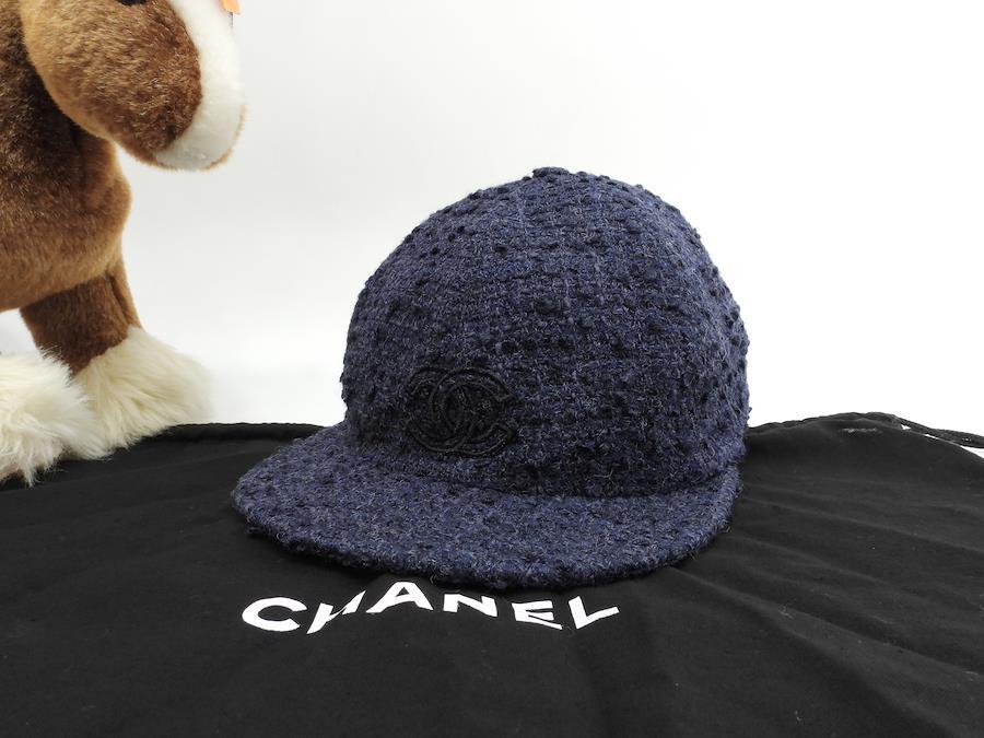 #Chanel #Cap #Wool #Tweed #Navy #BK #75%new #authentic #CoCo #Black #secondhand #wholeSale #haibanya #aisai-jp #転売可