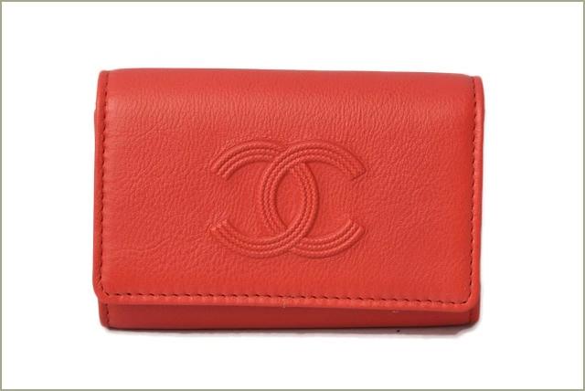 CHANEL 4連 CCマーク グレインドカーフ コーラルレッド/ ゴールド金具 A70262
