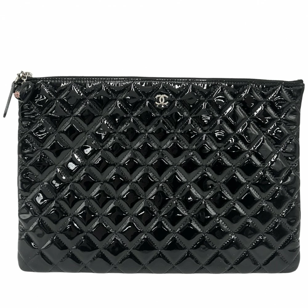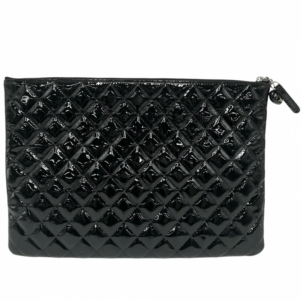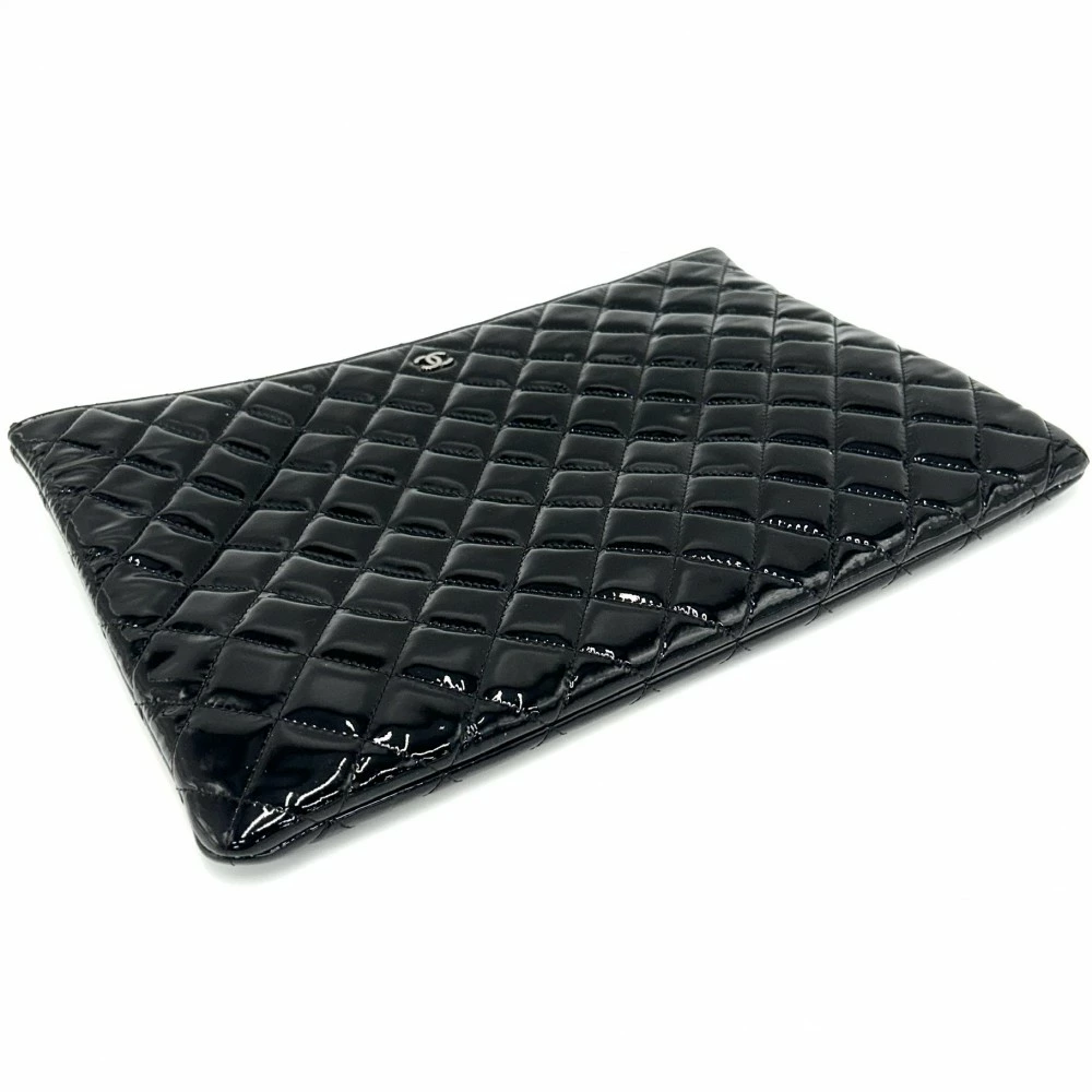 [18% OFF] Pre-owned Chanel Clutch Bag, Women's Matelasse Second Bag, A4 Size, Black Enamel, Silver Hardware, Excellent Condition
