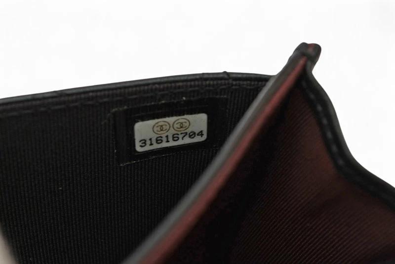 Pre-owned CHANEL coin case/card case in black/burgundy lambskin with silver hardware.
