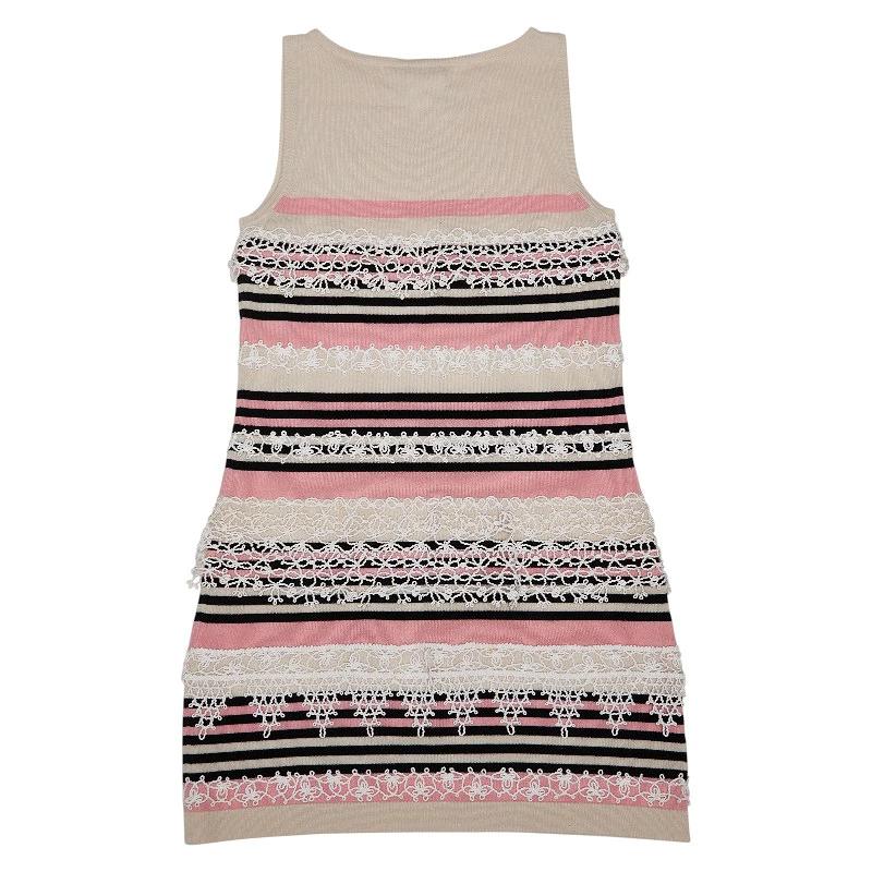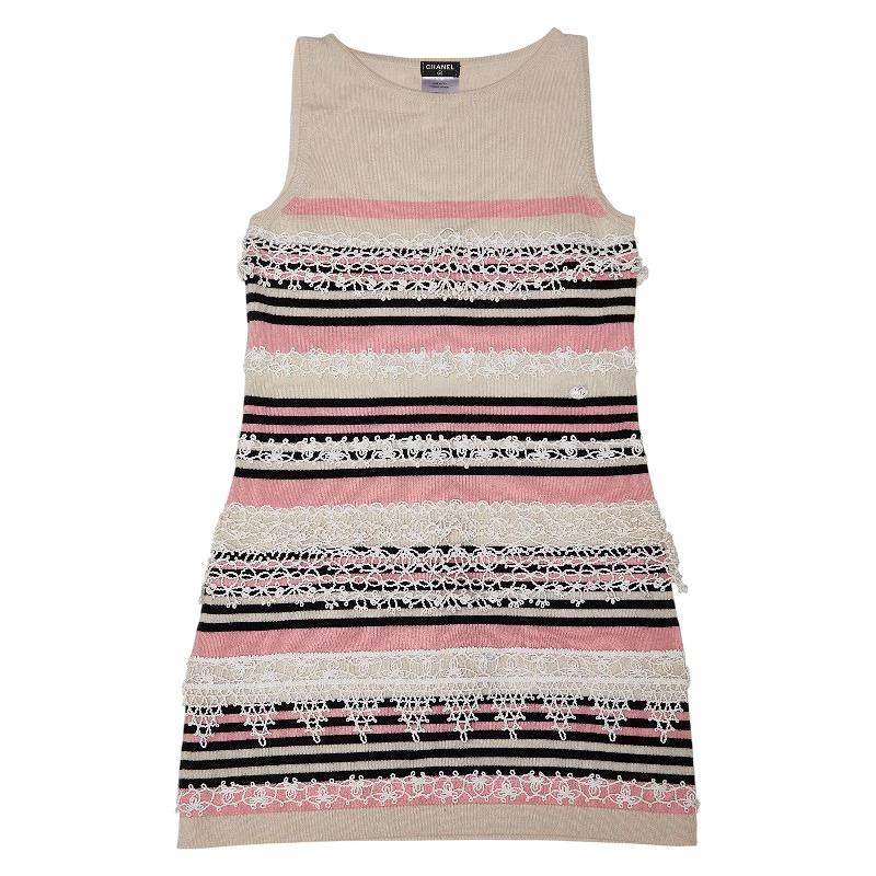 - シャネル ココボタン ノースリーブ ニット ワンピース サイズ38 P40251K02894 マルチカラー ピンク ベージュ カシミヤ コットン レディース CHANEL 【中古】