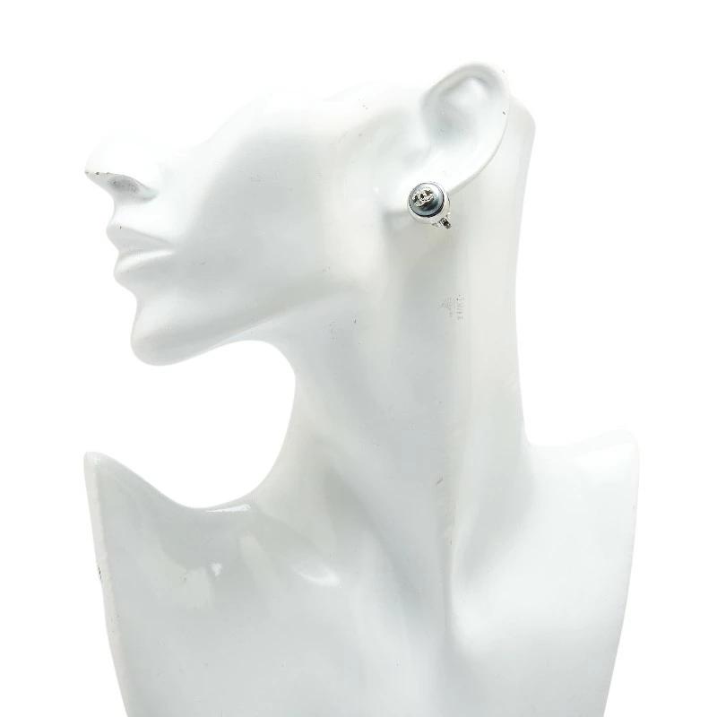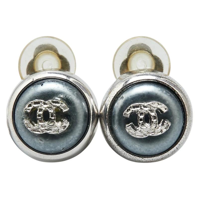 Pre-owned Chanel Coco Mark Earrings in Silver and Blue Metal.