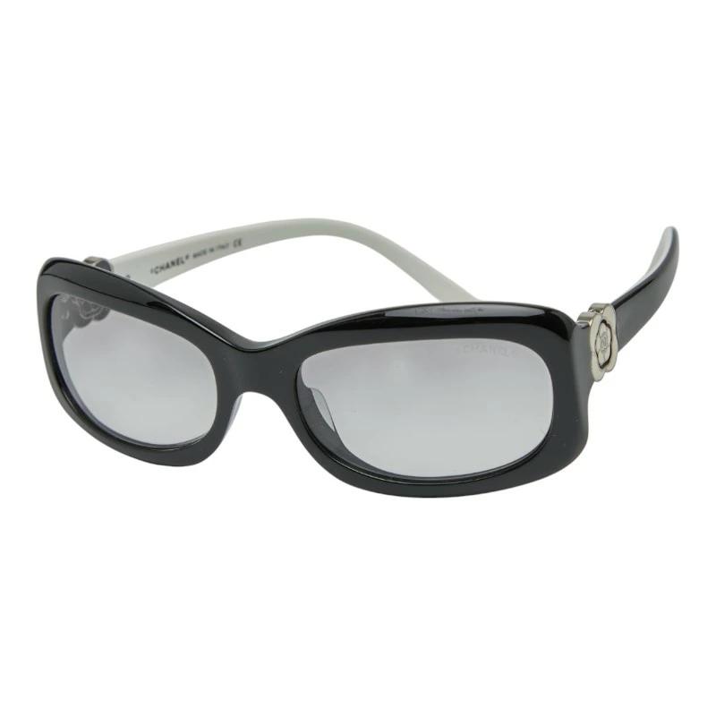 Pre-owned Chanel Coco Mark Camellia Sunglasses with Gradient Lenses, 5127, Black and White, Plastic, Women's