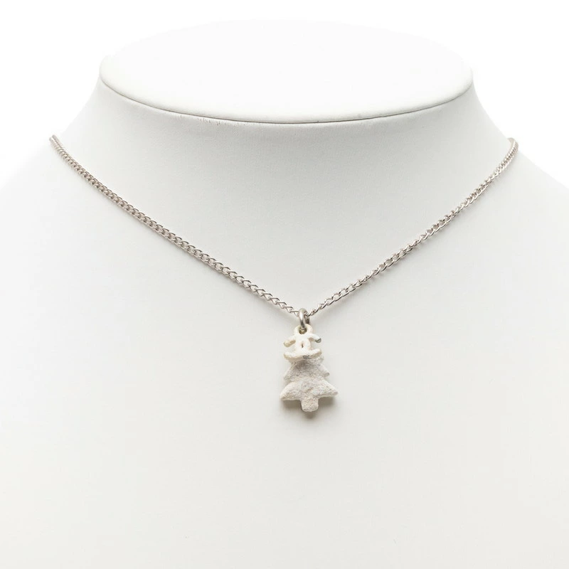 - シャネル ココマーク クリスマスツリー モチーフ ネックレス シルバー ホワイト メタル レディース CHANEL 【中古】