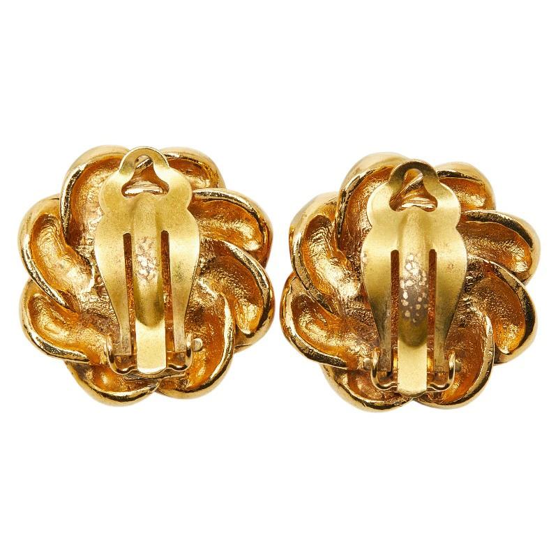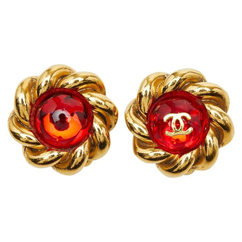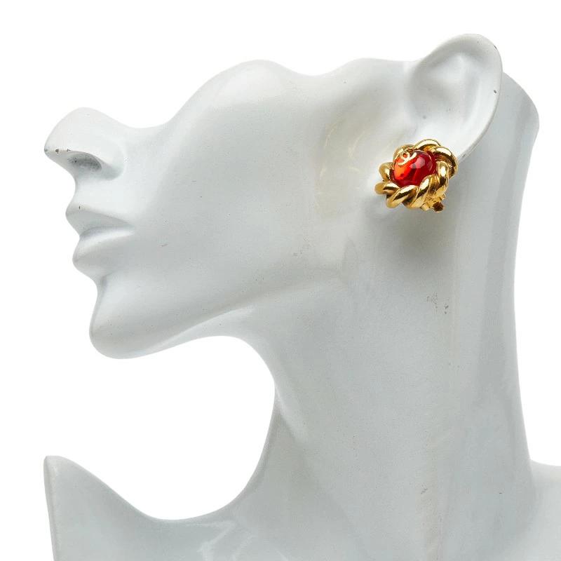 - シャネル ココマーク グリポア イヤリング ゴールド レッド メッキ ガラス レディース CHANEL 【中古】
