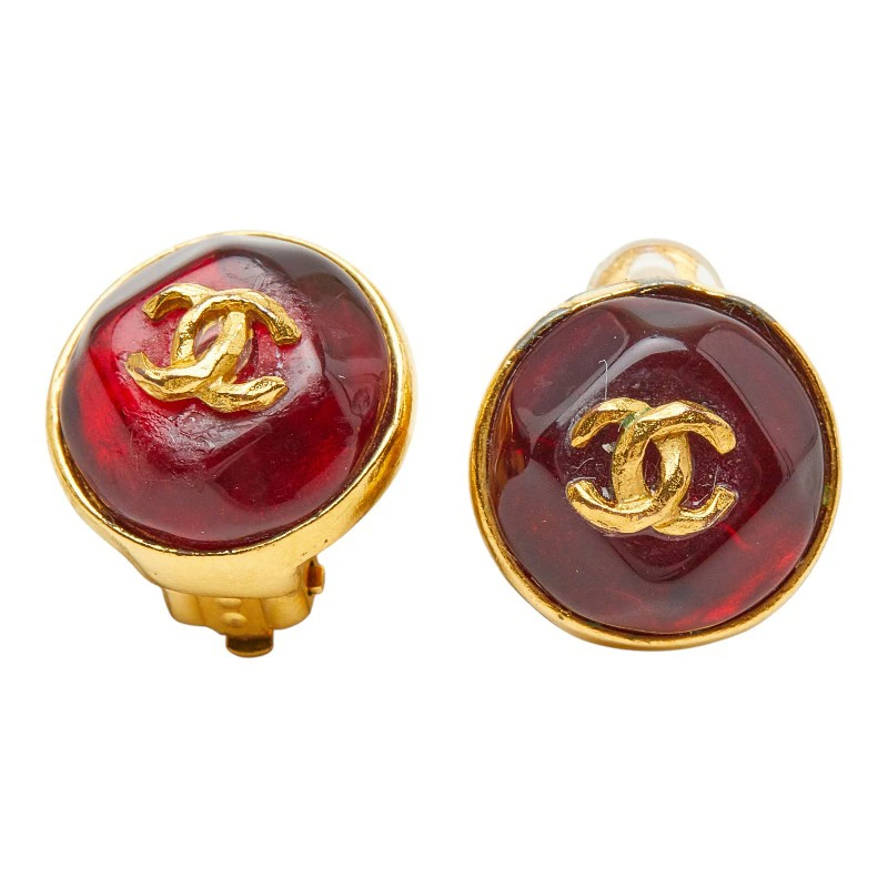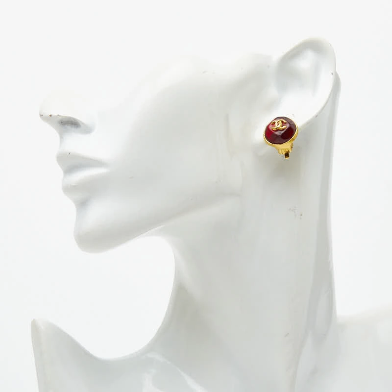 - シャネル ココマーク グリポア イヤリング ゴールド レッド メッキ レディース CHANEL 【中古】