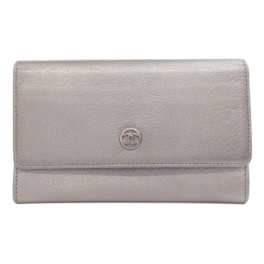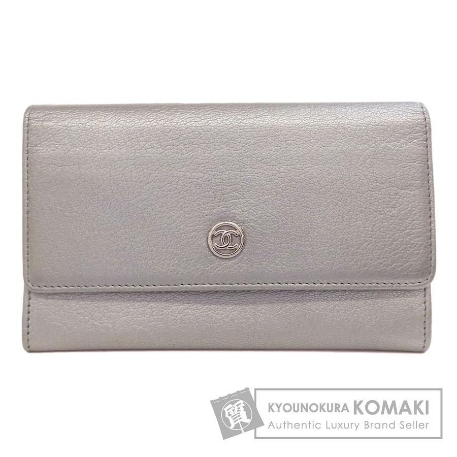レディース長財布(小銭入れあり)CHANELカラー:シルバー系カーフコンディションAB+(ABプラス)ランク