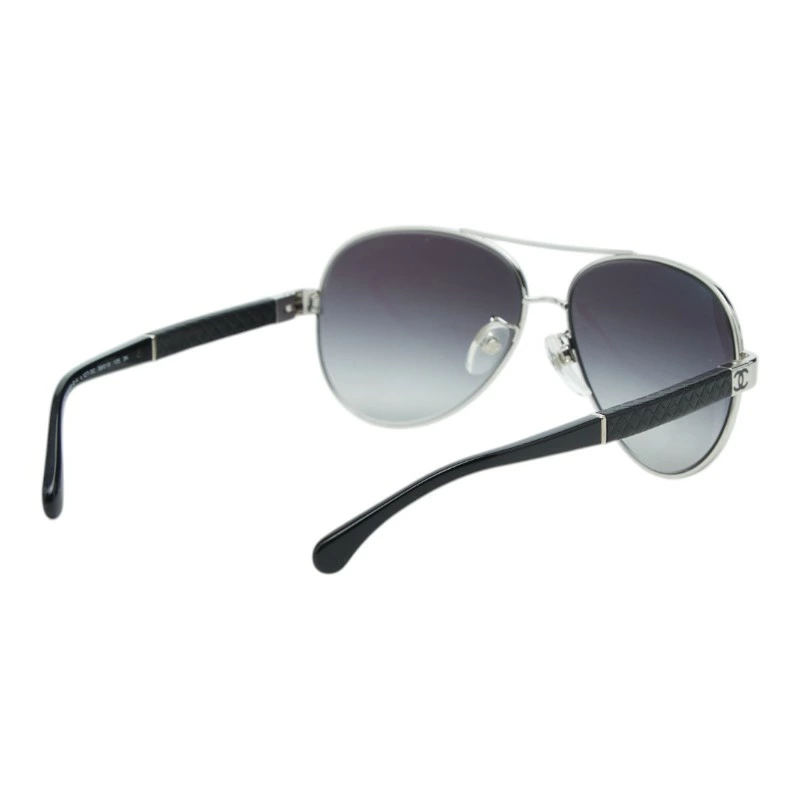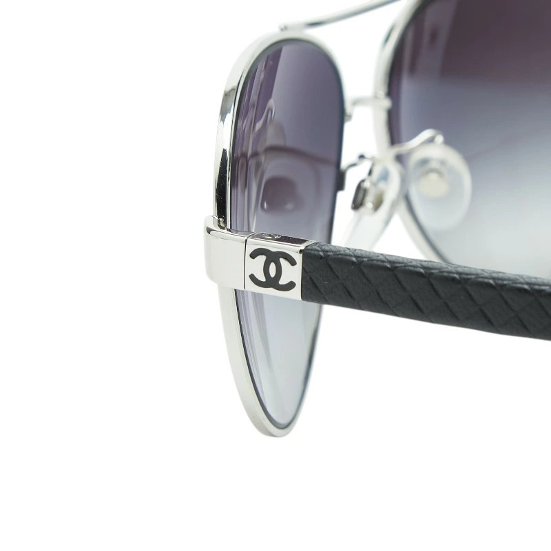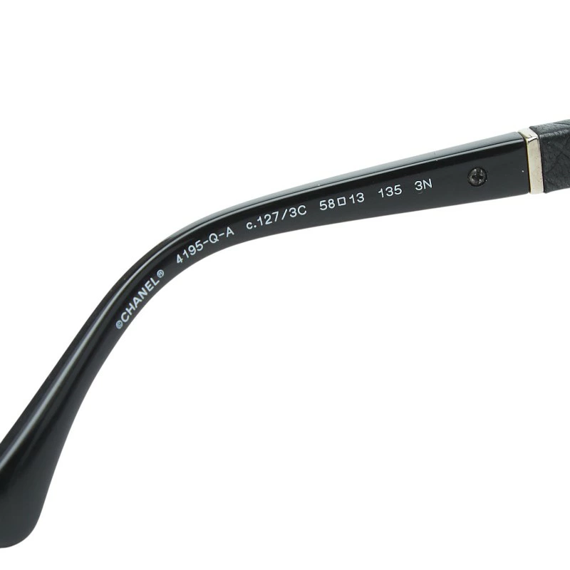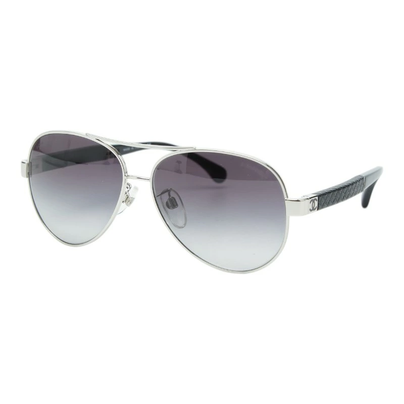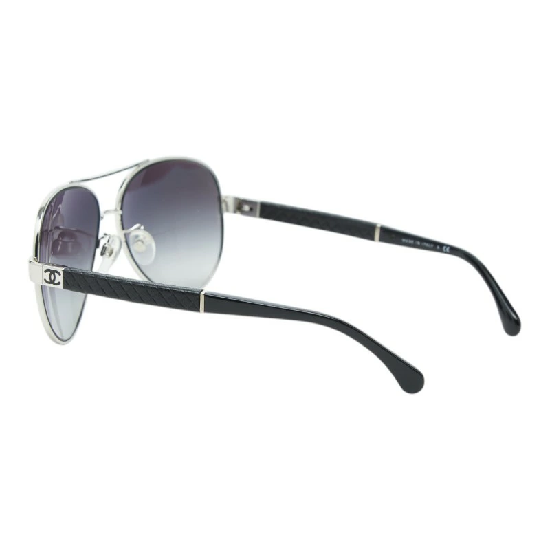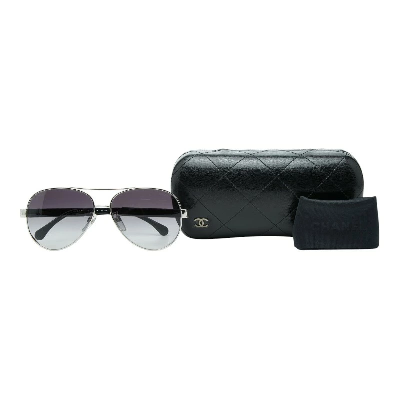 - シャネル ココマーク ティアドロップ サングラス 4195-Q-A シルバー ブラック メタル レザー レディース CHANEL 【中古】