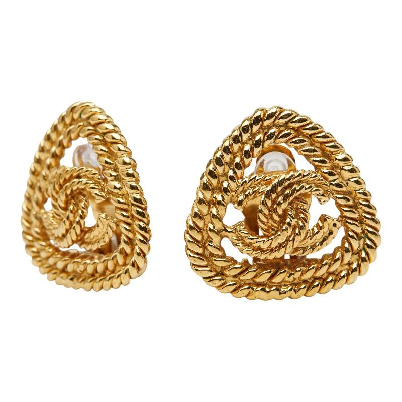 Pre-owned Chanel Coco Mark Triangle Earrings, Gold Plated, Women's.