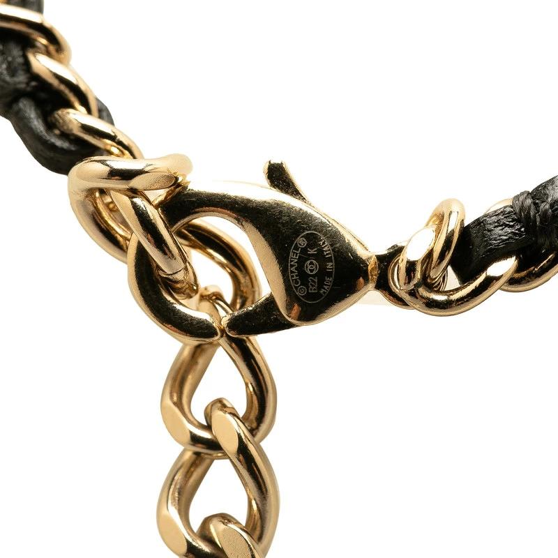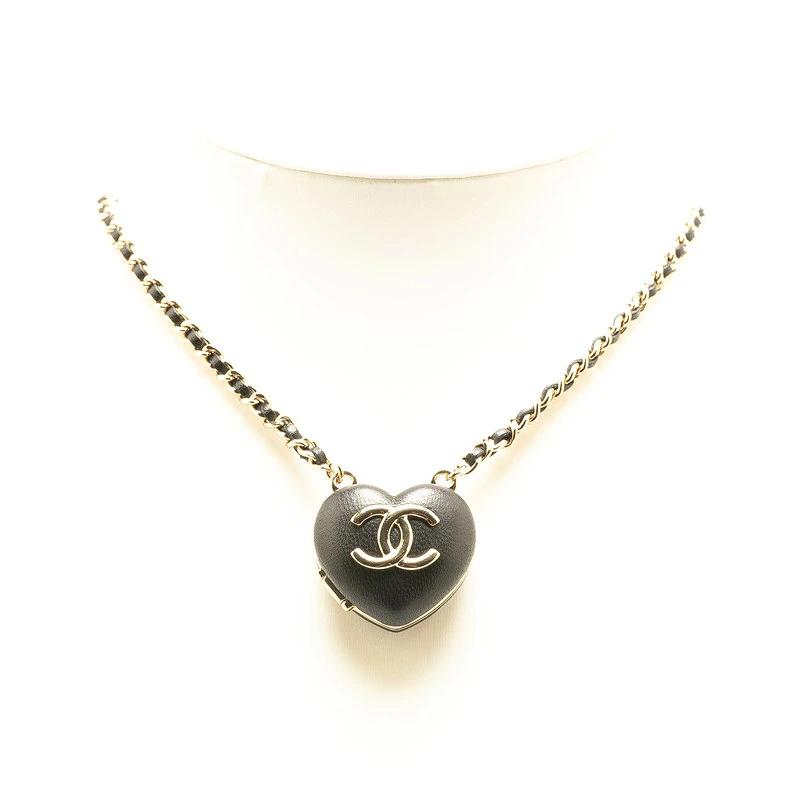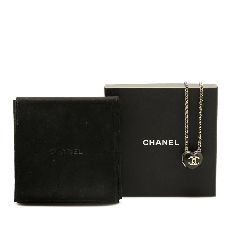 Pre-owned Chanel Coco Mark Heart Mirror Locket Pendant Necklace in Black and Gold Lambskin. Women's.