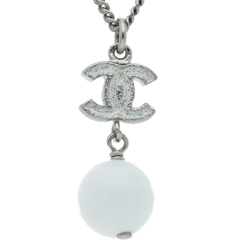 Pre-owned Chanel Coco Mark faux pearl necklace (Head (approx.): H 1.0 x D 0.4 x H 0.4 cm, Chain: approx. 42 cm), Brass, Excellent condition
