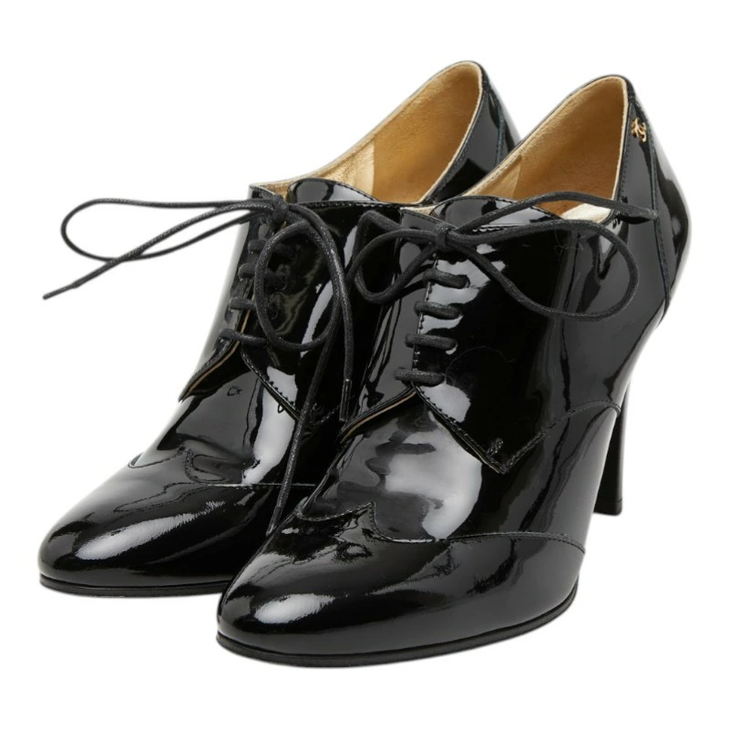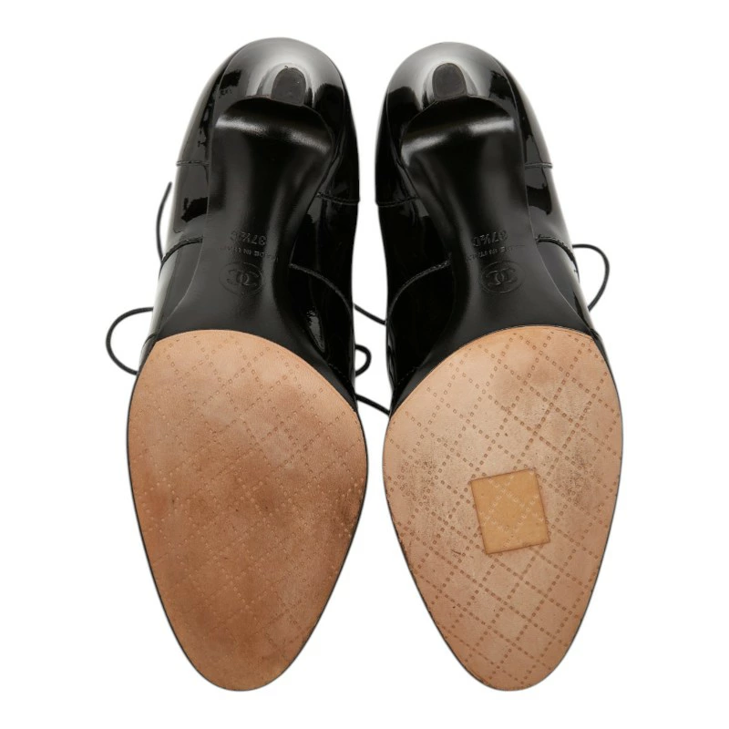 シャネル ココマーク ブーティ 37 1/2C G33057 ブラック パテントレザー レディース CHANEL 【中古】