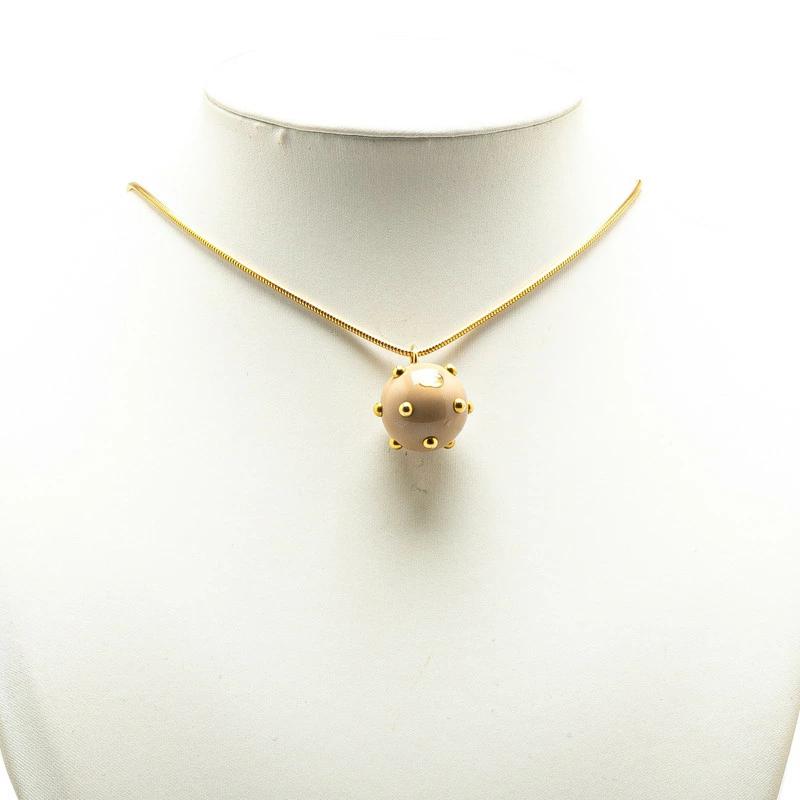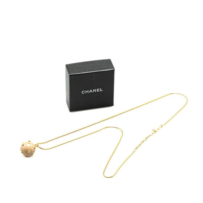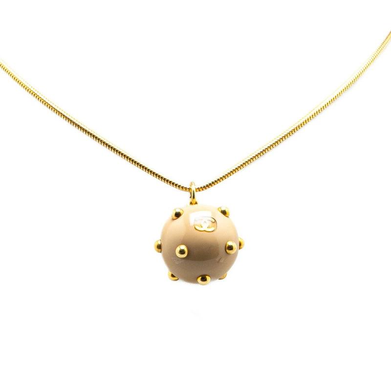 Pre-owned Chanel Coco Mark Ball Stud Necklace, Gold and Beige Plated, Women's