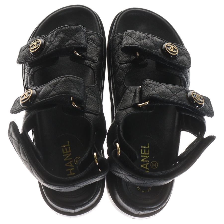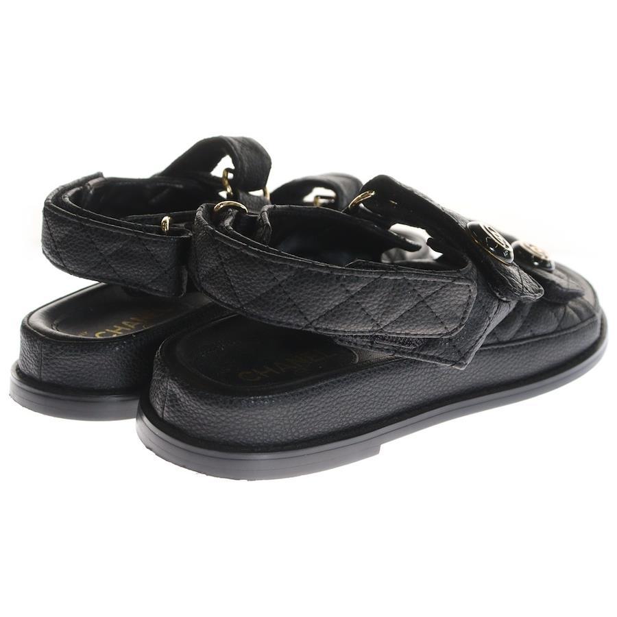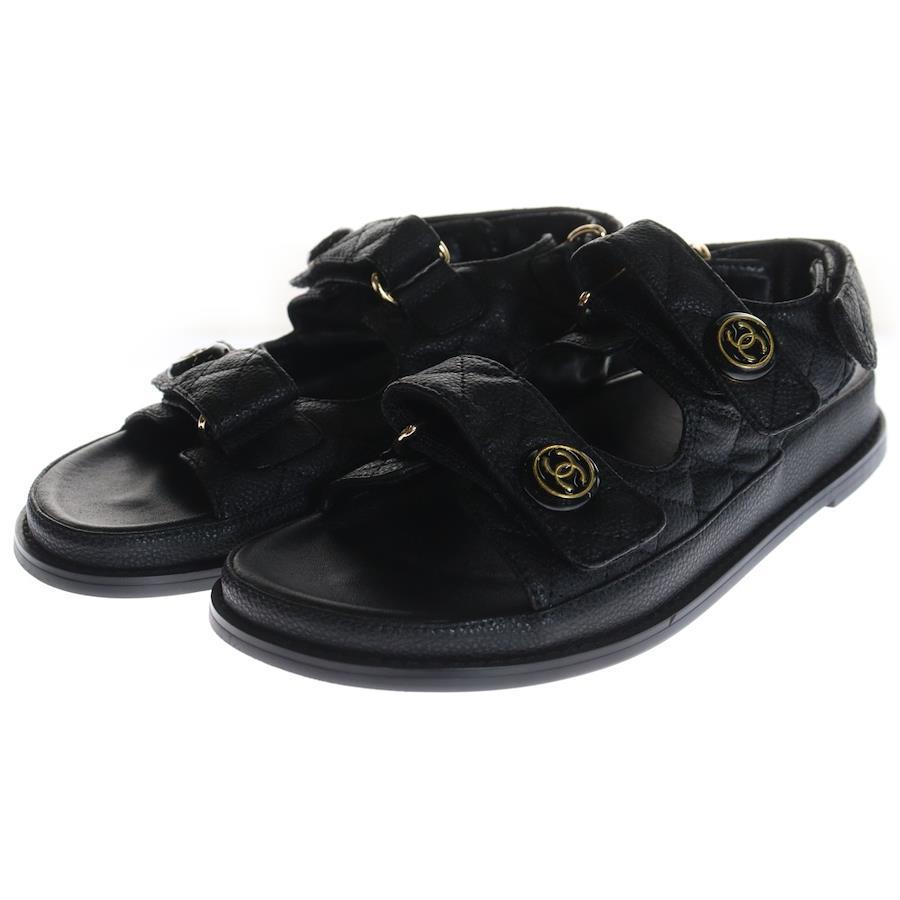 [モデル]ココマーク マトラッセ キャビアスキンレザーサンダル シューズ ブラック 40