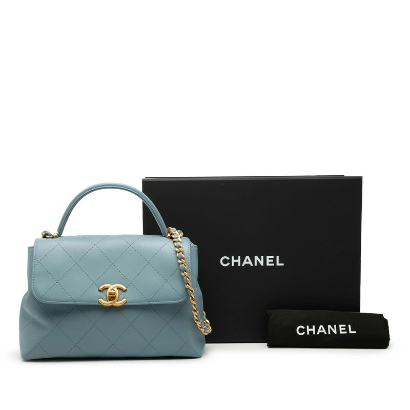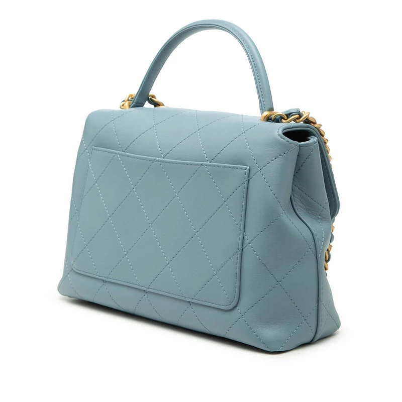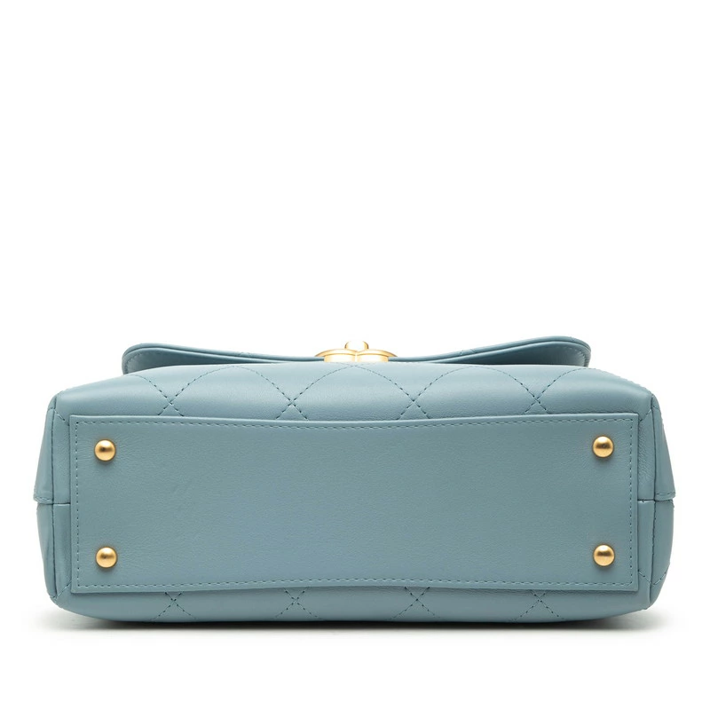 Chanel Coco Mark Matelassé Handbag, Top Handle Shoulder Bag, 2-Way, Blue Gold, Lambskin, Women's, CHANEL [Pre-owned]