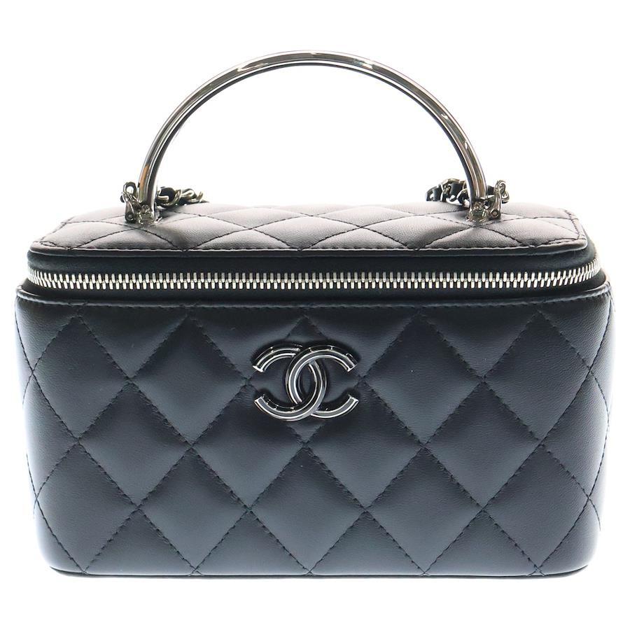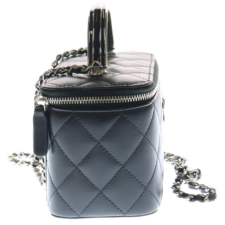 [モデル]ココマーク マトラッセ バニティ ラムスキン レザーチェーンショルダーバッグ ブラック レディース