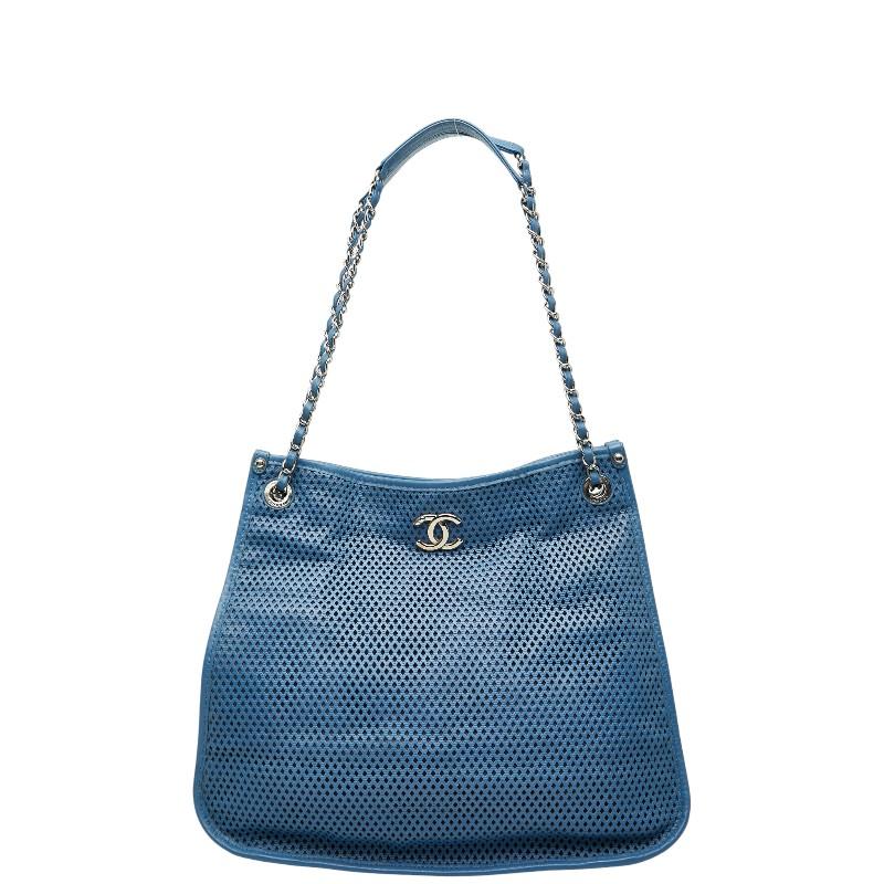 - シャネル ココマーク メッシュ チェーン トートバッグ ライトブルー レザー レディース CHANEL 【中古】