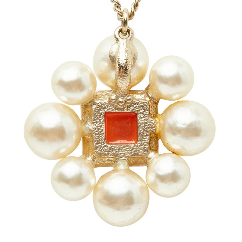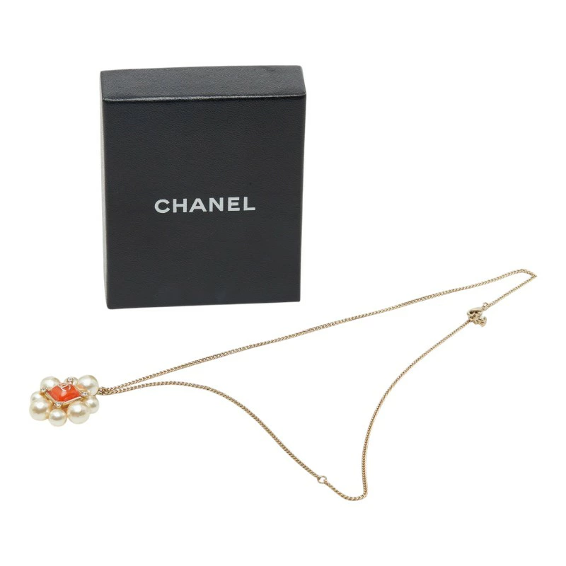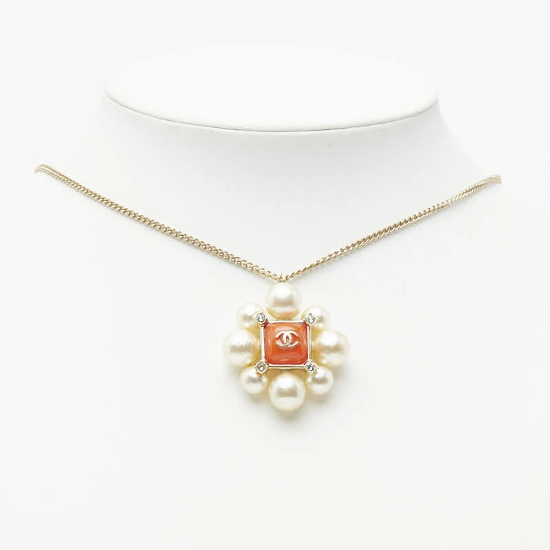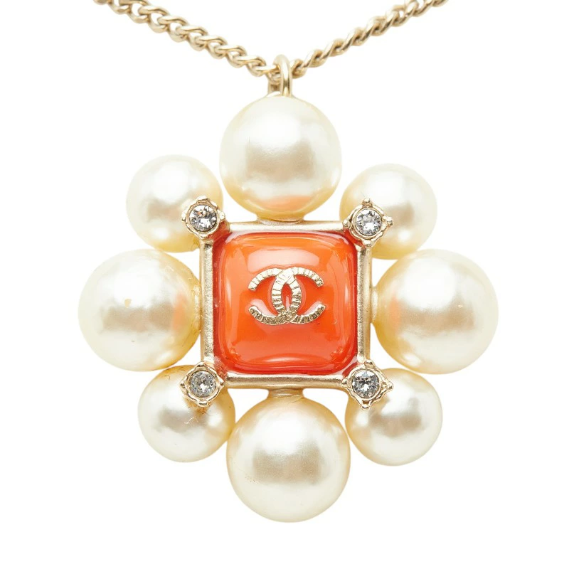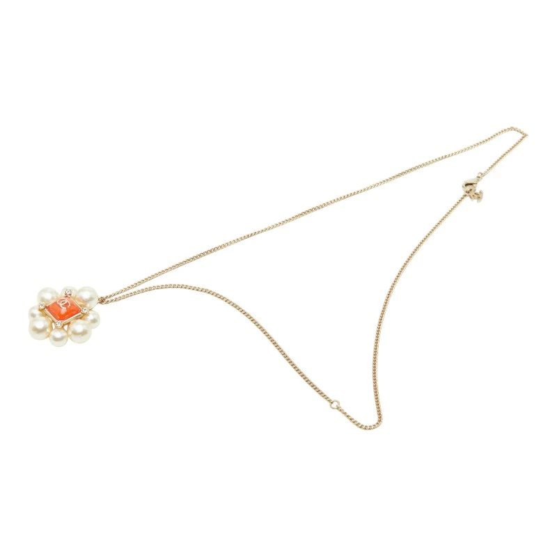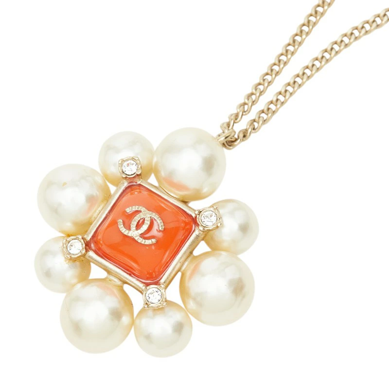 - シャネル ココマーク ラインストーン ネックレス ゴールド オレンジ メッキ フェイクパール レディース CHANEL 【中古】
