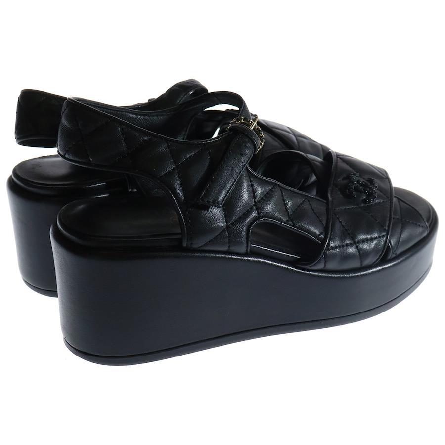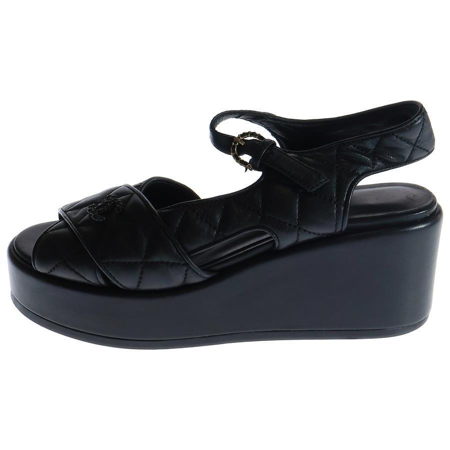 [モデル]ココマーク ラムスキン ウェッジソール サンダル レディース ブラック