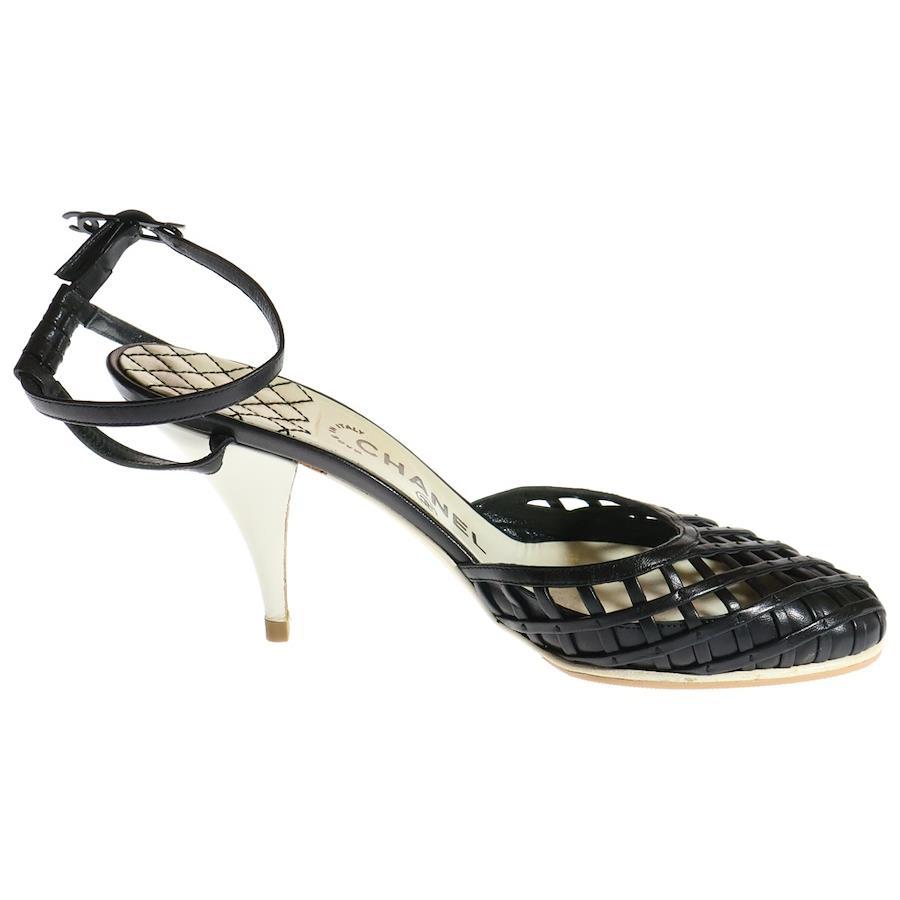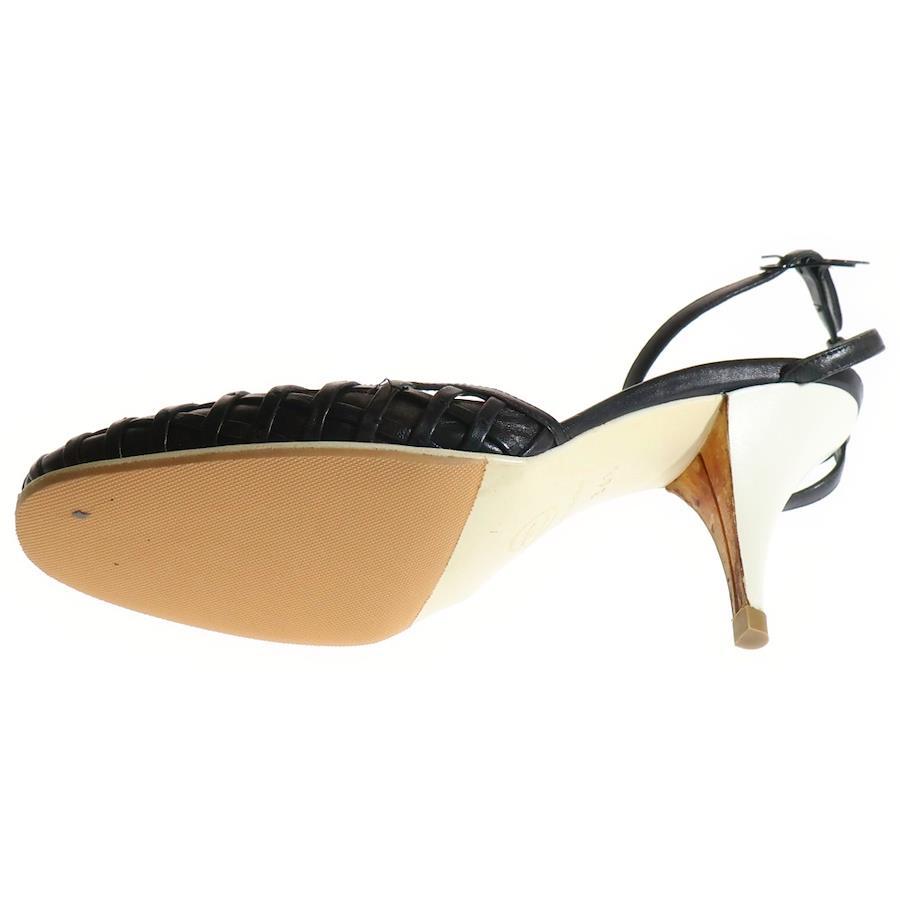 [モデル]ココマーク レザー メッシュ アンクルストラップ ヒールサンダル パンプス ブラック レディース
