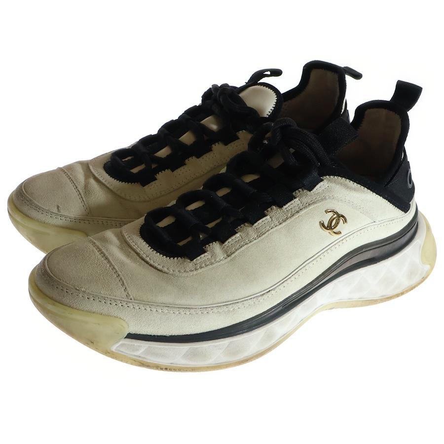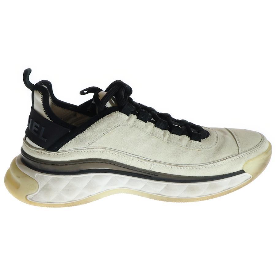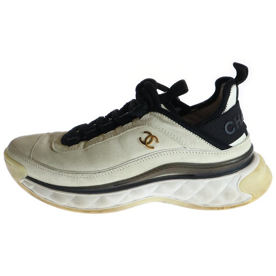 [モデル]ココマーク ロゴプレート スウェードレザー レースアップ ローカットシューズ スニーカー ホワイト/アイボリー レディース G45331