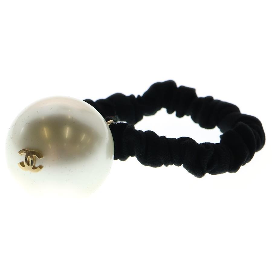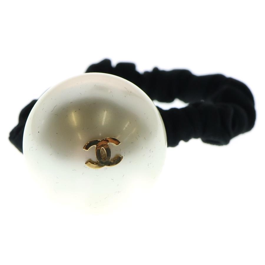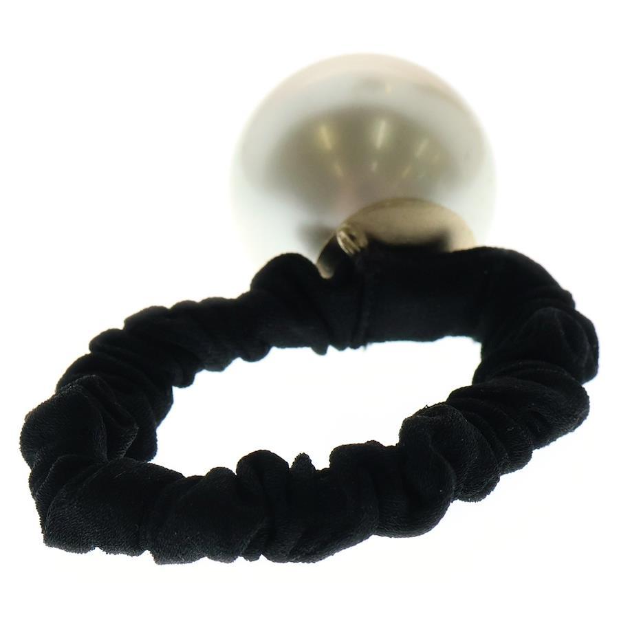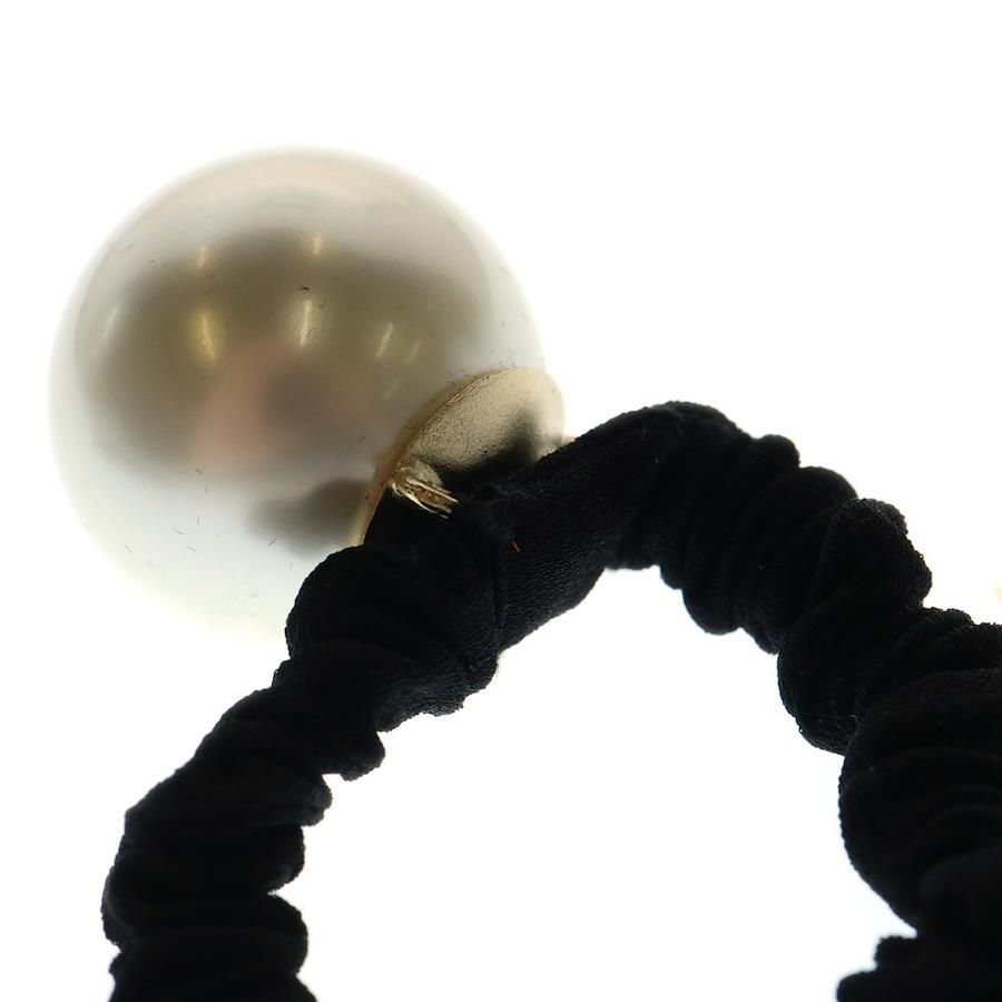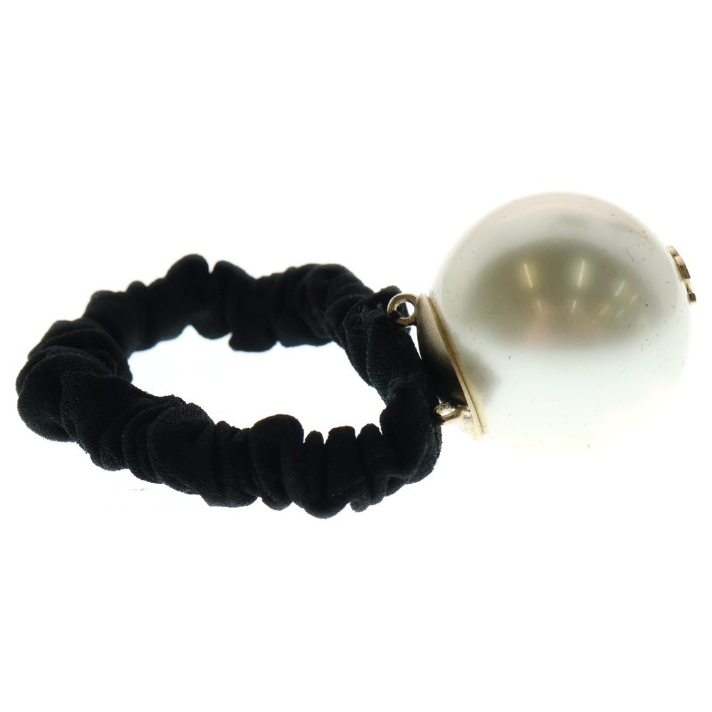[モデル]ココマーク ロゴプレート フェイクパール ヘアゴム アクセサリー ホワイト/ブラック F21V