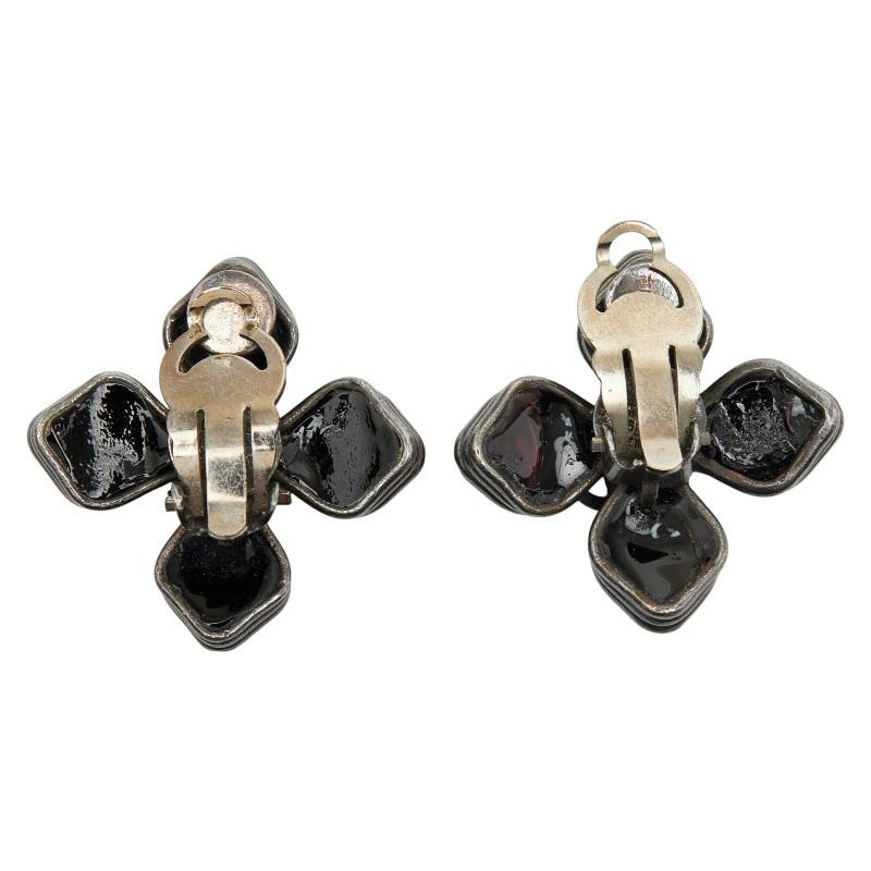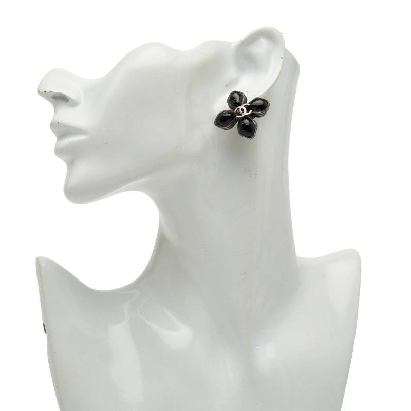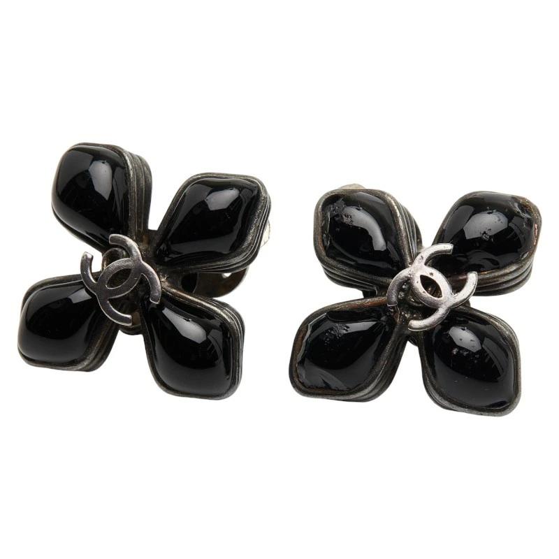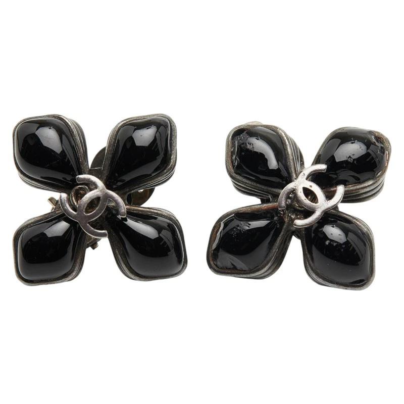 - シャネル ココマーク ヴィンテージ フラワーモチーフ イヤリング ブラック シルバー メタル メタル レディース CHANEL 【中古】