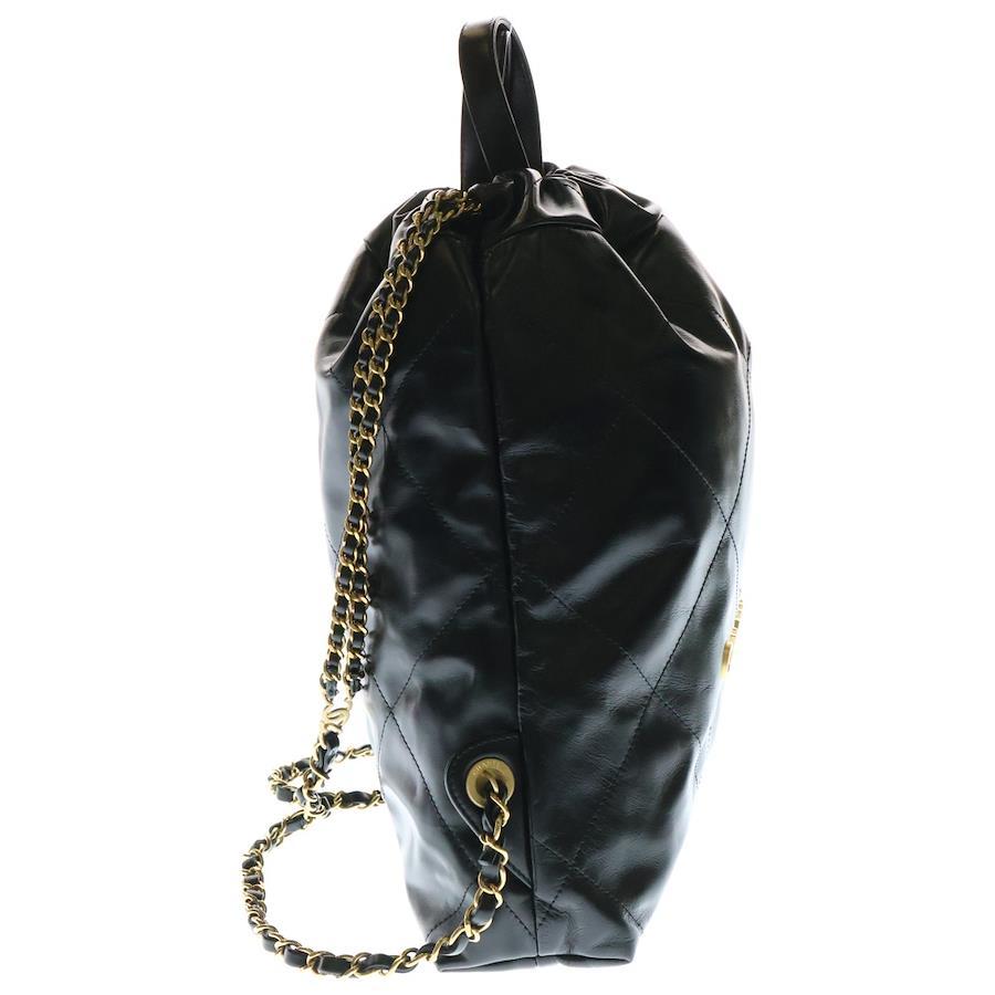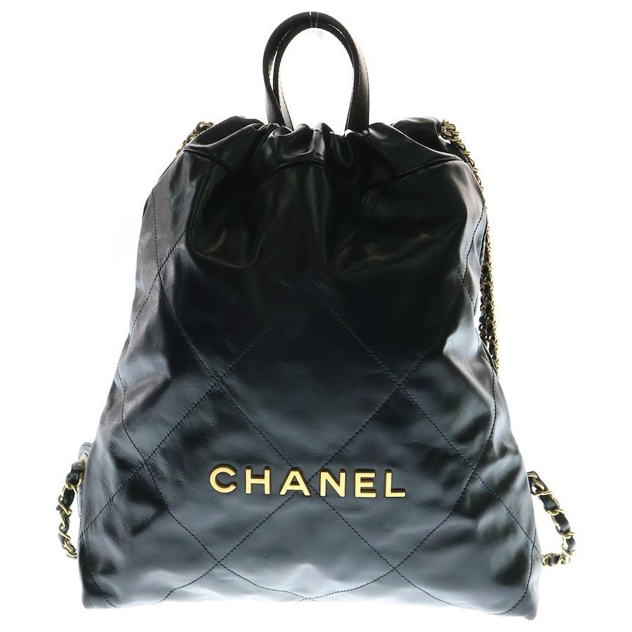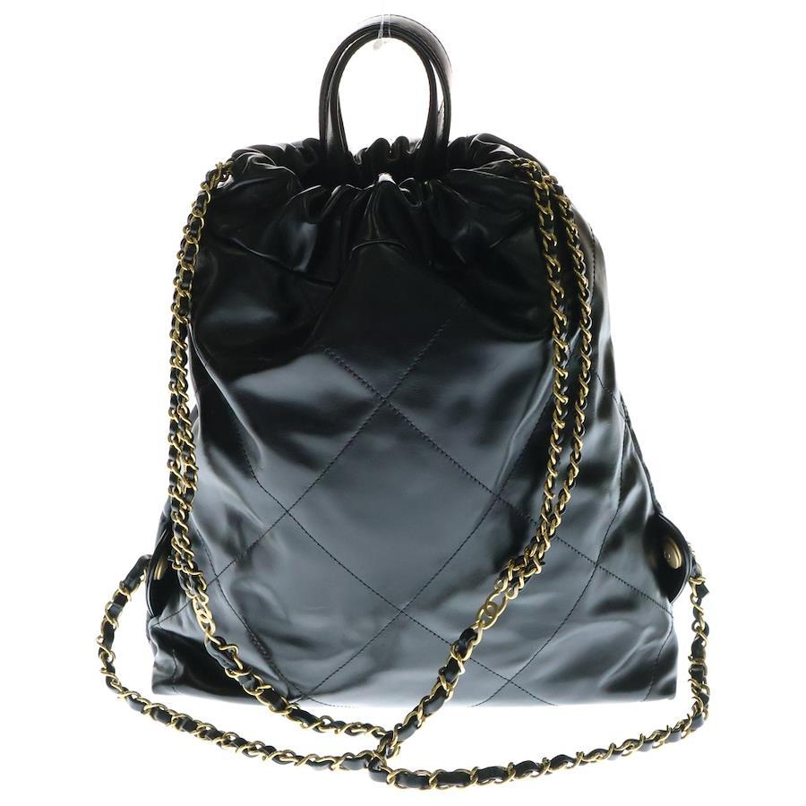 [モデル]シャネル22 リュック バックパック ブラック レザー ゴールド金具 AS3313