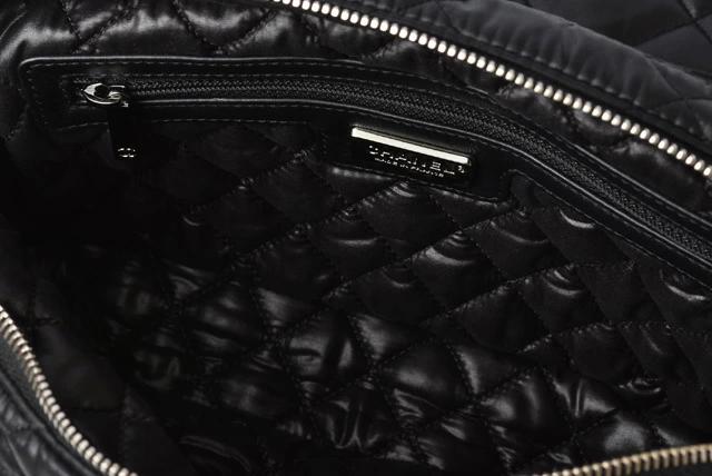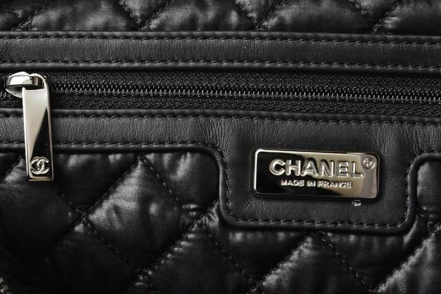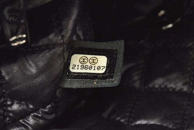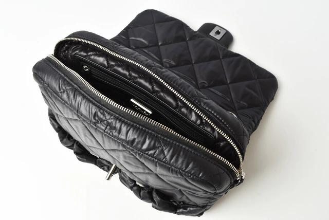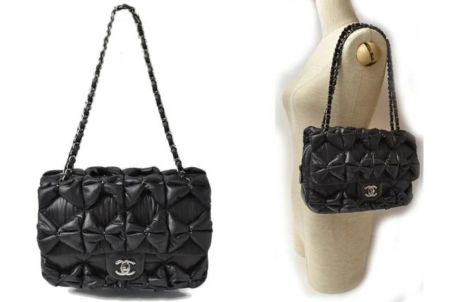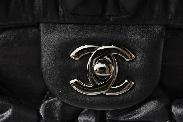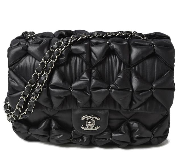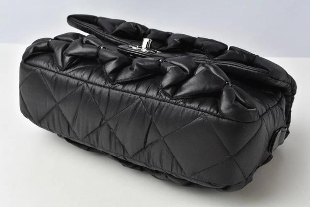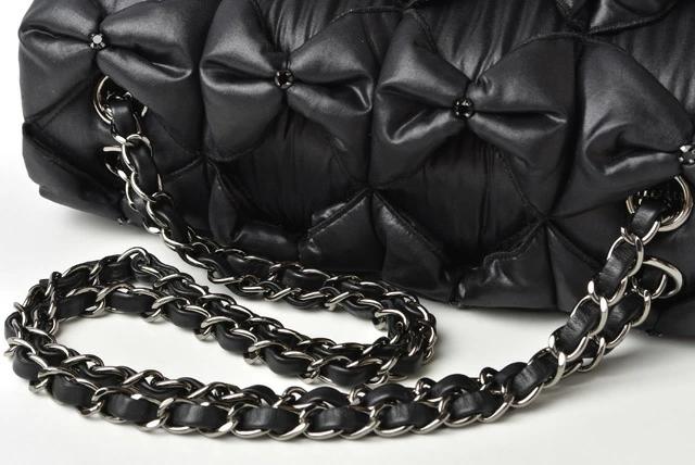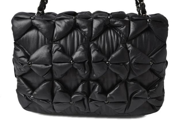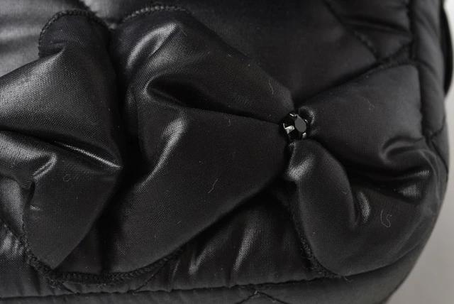 CHANEL ナイロン リボンモチーフ/ラインストーン ブラック/シルバー金具 キルティング