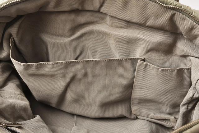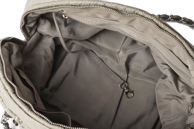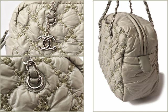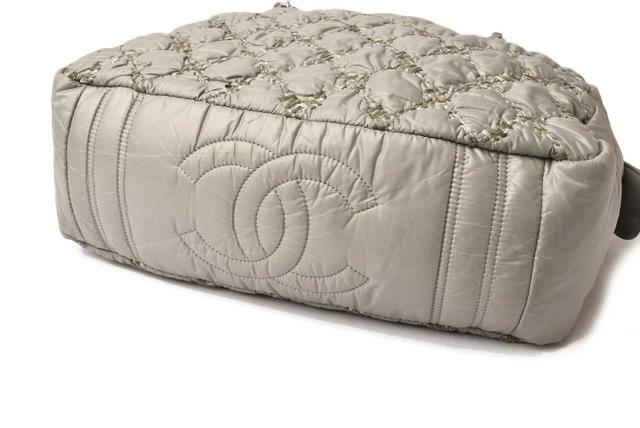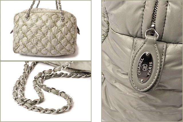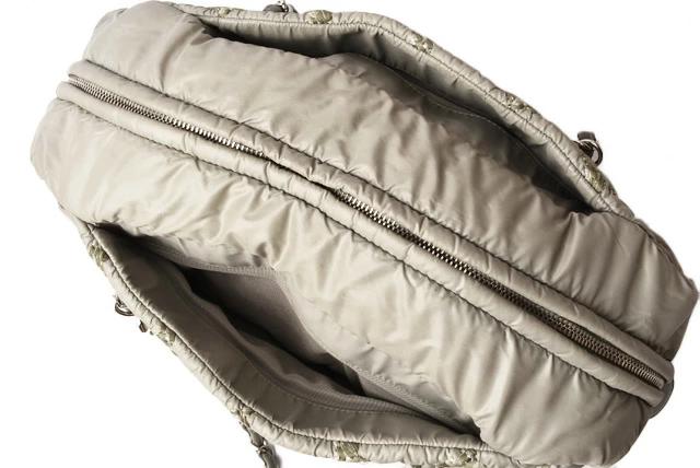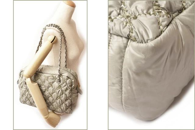 特殊加工を施したナイロン地に、グレーやシルバー系の3カラーで、キルティングステッチをあしらい、とってもおしゃれ!
