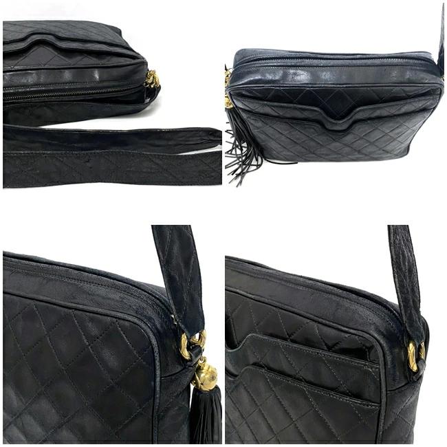 商品名:ショルダーバッグブランド名:シャネル/CHANEL商品ランク:Bランク素材:レザーラムスキンサイズ:(約)w:28cm×h:20cm×d:8cmショルダー紐:108.5cmシリアル・Ref:69Lh992カラー:ブラックゴールドマトラッセ仕様:外:オープンポケット×2内:オープンポケット×1ファスナーポケット×1付属品:布袋詳細説明:上下の角・バッグのフチ・ショルダー紐のフチにスレ、表面の全体的にスレや傷、金具に傷や色剥がれ、内側上部フチにスレ、バッグ下部にシワ、外ポケット内側に傷・押し跡、ショルダー紐に傷・シワ、ファスナーレールサイドにシワ・スレ、使用感はありますがまだまだお使いいただけます。コメント:タッセルのチャームをワンポイントにあしらったシンプルなショルダーバッグ。ポケットも豊富で機能性・デザイン性に優れたお品物です。商品番号:f-15384no.0040891221025