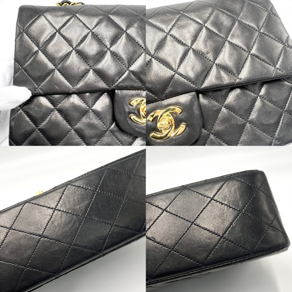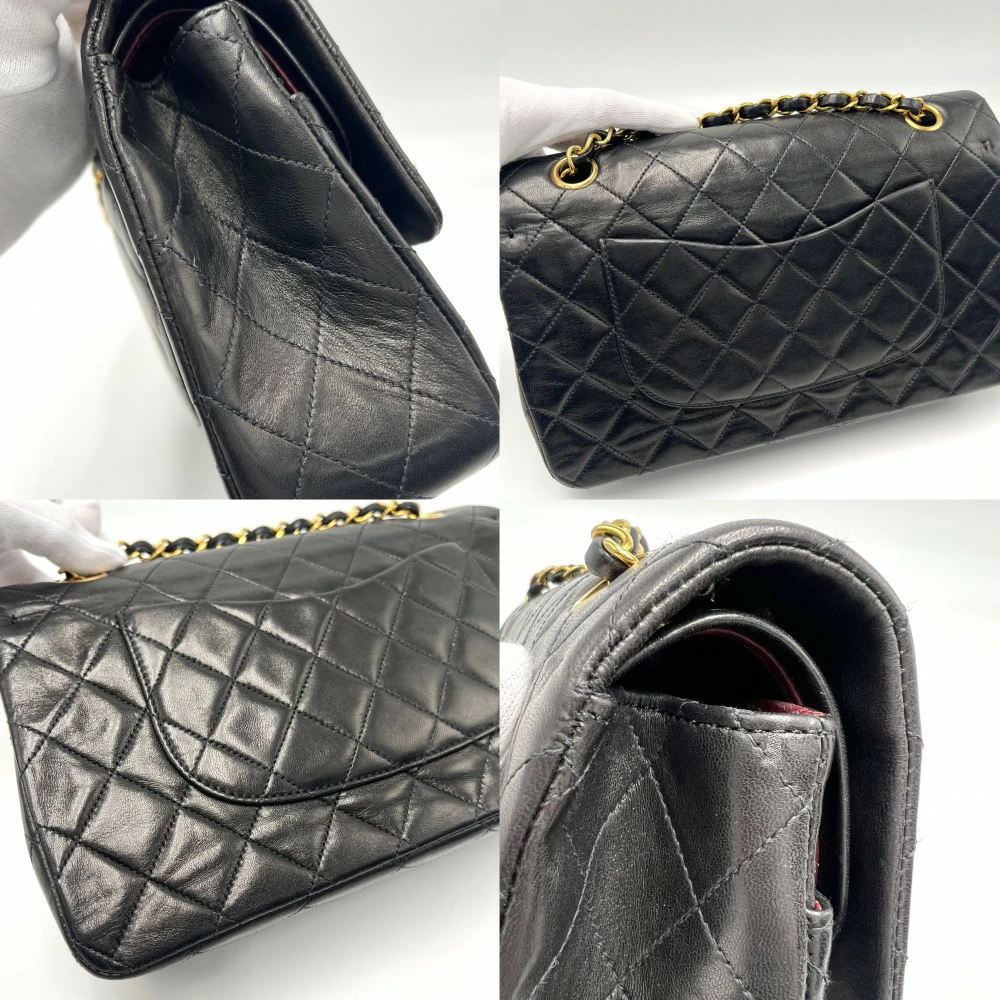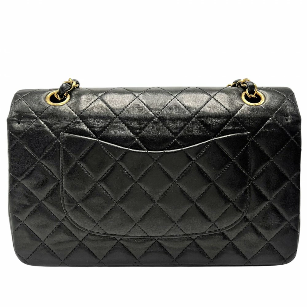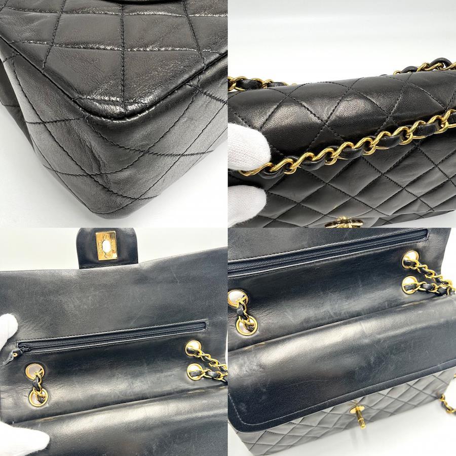 Pre-owned Chanel Matelasse 25 Shoulder Bag for Women, Double Chain, Double Flap, Shoulder/Crossbody, Coco Mark, Turn Lock, Black Lambskin, Gold Hardware