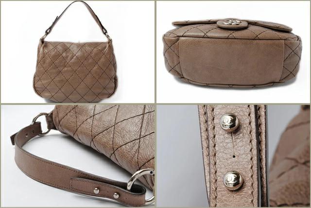 ショルダーバッグ キルティング レザー ライトブラウン/TAUPE