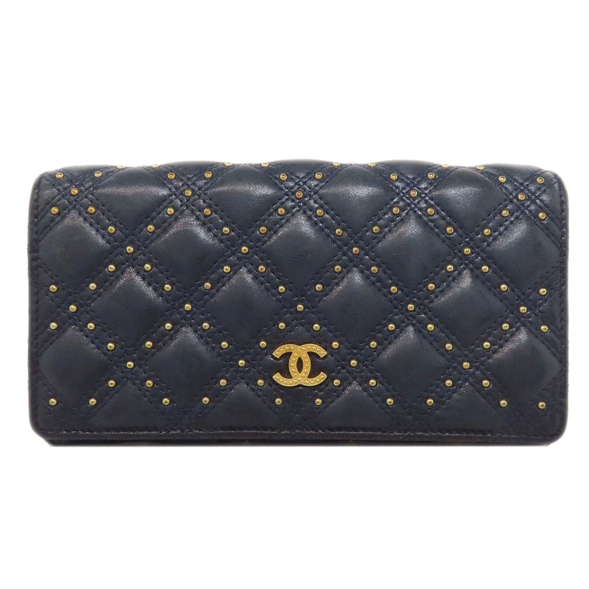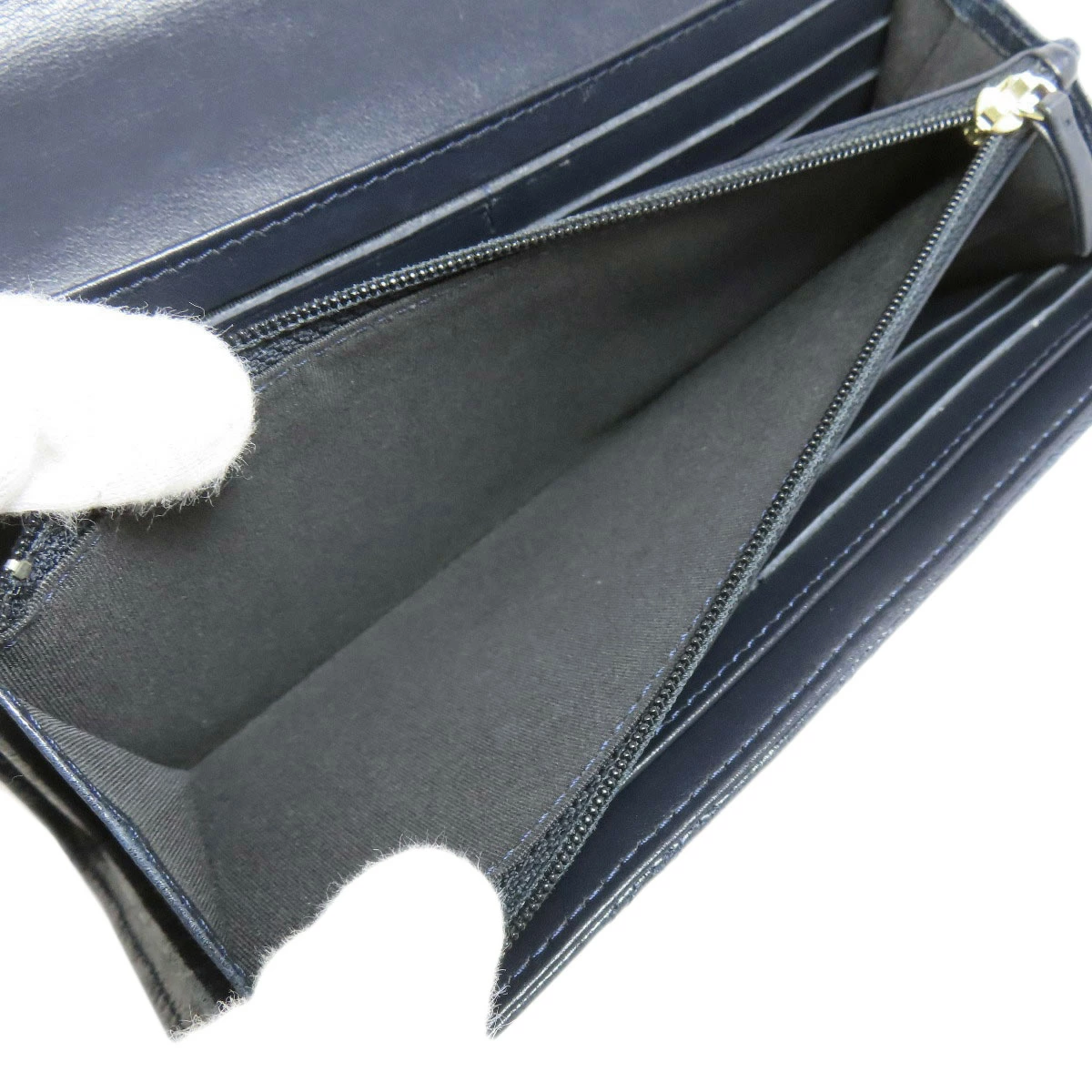 レディース長財布(小銭入れあり)CHANELカラー:ネイビー系ラムスキンコンディションAB+(ABプラス)ランク