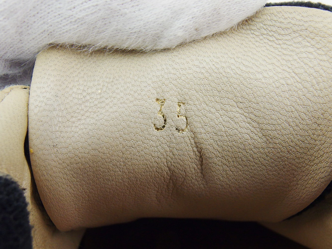 コンディション全体の状態詳細:レザー部分や生地の劣化がございますが、まだまだご使用いただけます。外側:レザー部分(トップのレザーにヒビ)、スエード調部分(全体的に劣化による剥がれ)、ソール(ヒールゴム外側寄りに若干のすり減り)あり。内側:インソール(汚れ)あり。その他、目立たない 傷 汚れ などの一般的使用感があります。